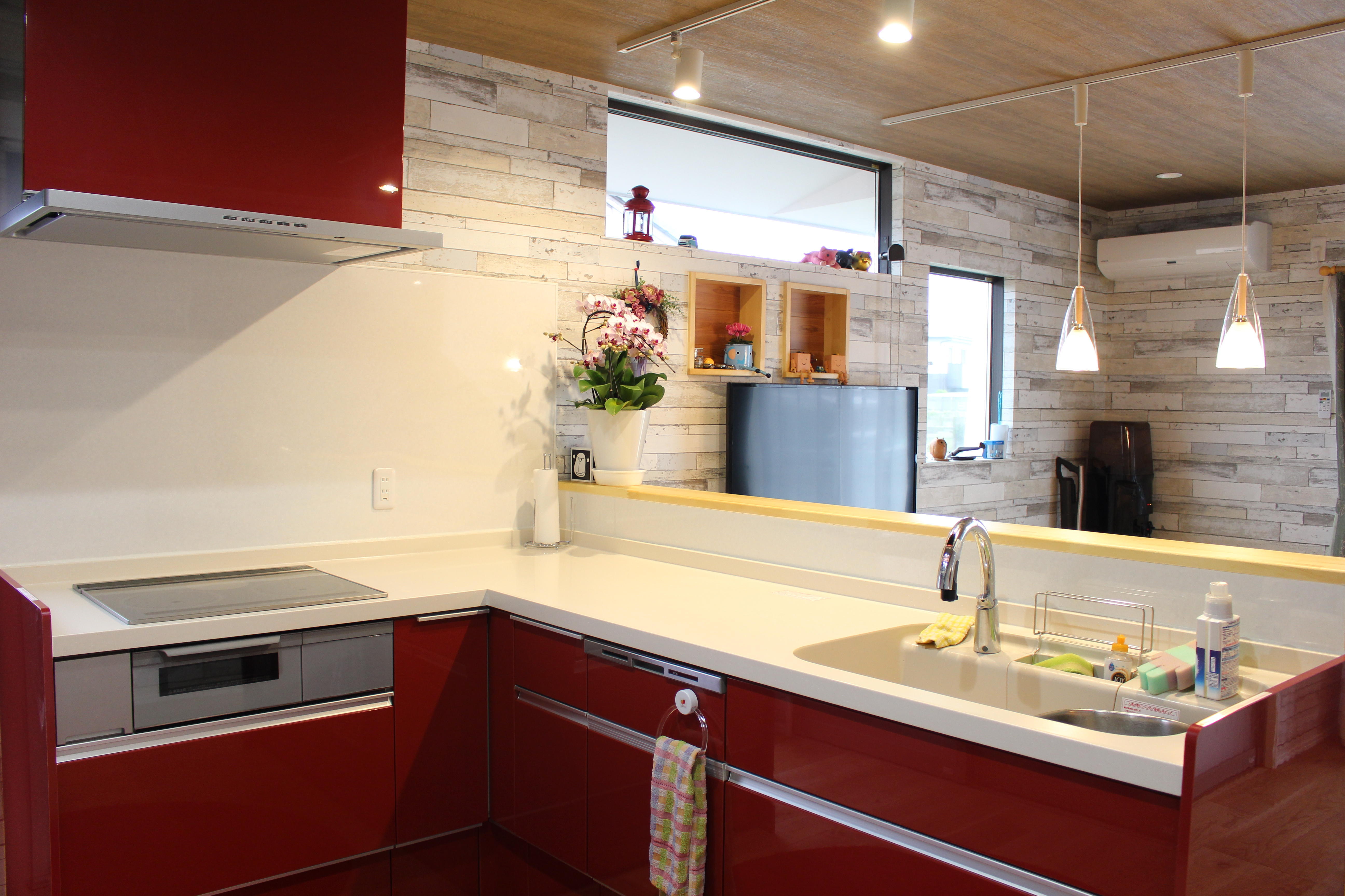 IHのシステムキッチンになり、ガスの時と比べ掃除も楽で、毎回キッチンを使う度にキレイに拭くようになりました。後ろの収納棚も大容量で整理整頓しやすく、キッチンの上はいつもスッキリして気持ちがいいです。