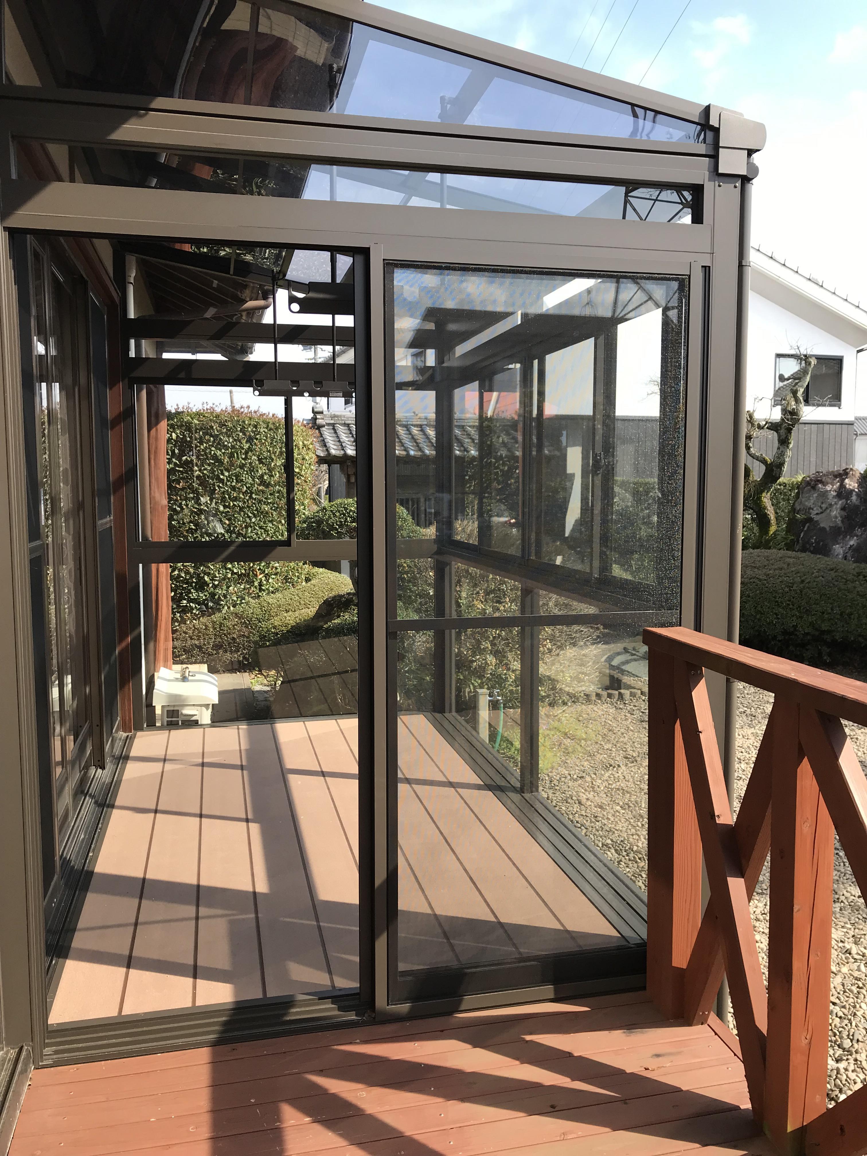 実際の商品を見てからの施工依頼だったのでお施主様のイメージも付きやすかったのではないかと思います。窓をずっと締めっきていると湿気が溜まり、結露してしまうことがある為、サンルームでも適度に換気することをおすすめします。