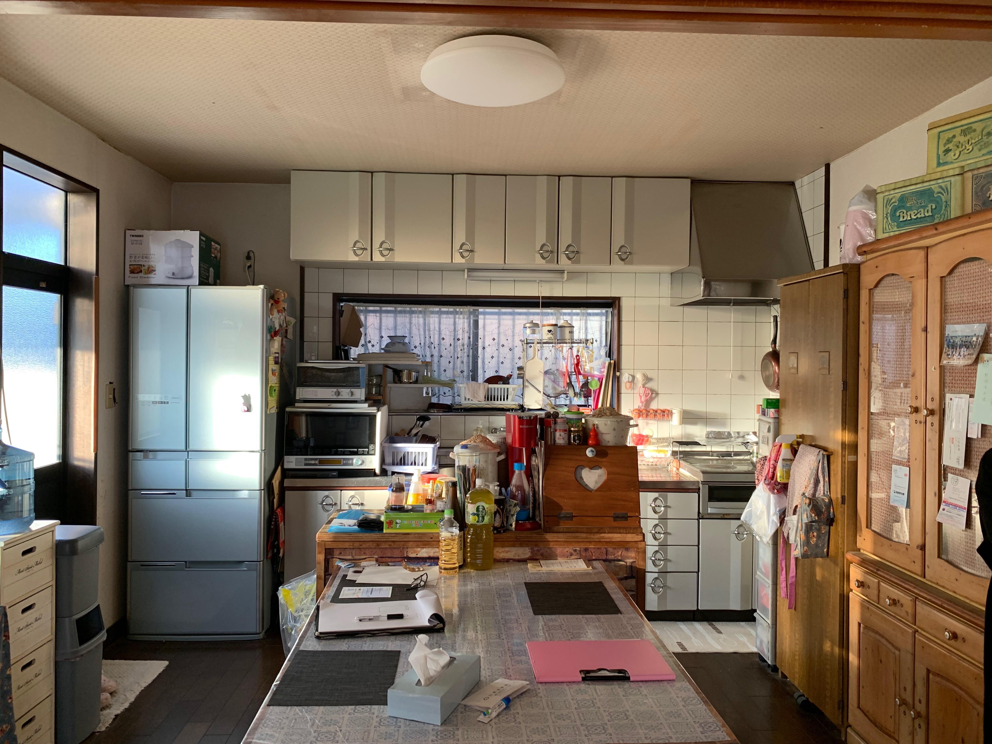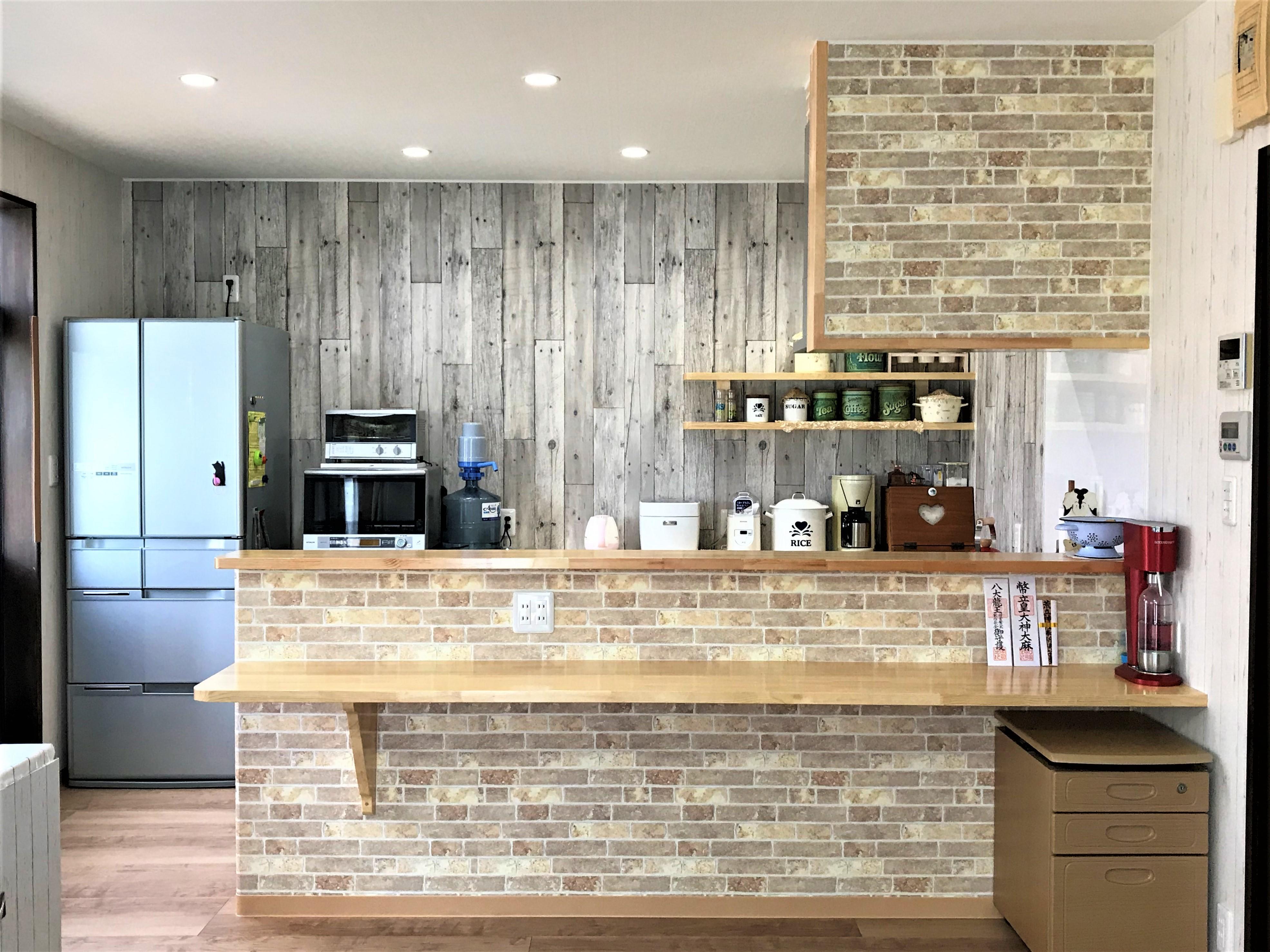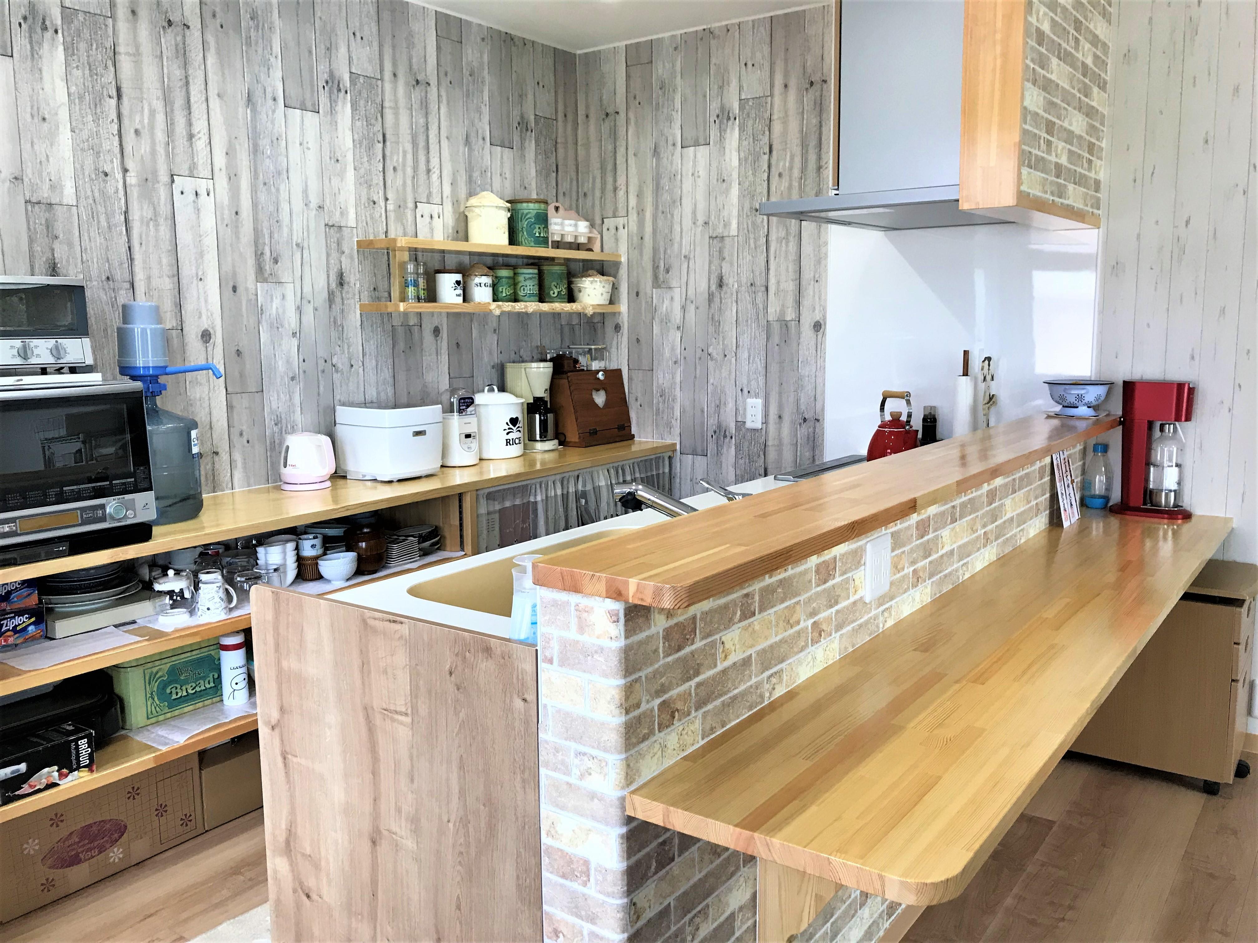 大好きなカントリー調のキッチンにリフォームできて嬉しいです。キッチン前のカウンターも気に入っており、朝食はここで食べています。今回このリフォームを機会に、食器棚・使わない食器等(物であふれていた)たくさんの物を断捨離し、気持ちまでスッキリしました。システムキッチンも思ったよりたくさん収納でき食器棚を処分しましたが不便ではありません。これからは物を増やさずこの状態を維持していきたいと思います。ありがとうございました♪