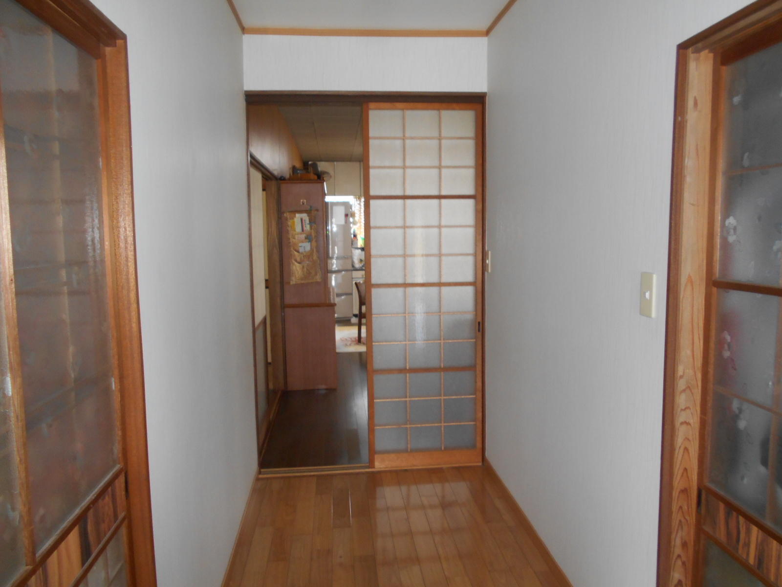 クロスを貼り替えて明るくなりましたね。廊下の建具も少し幅を広げるでけで大分違いますね。