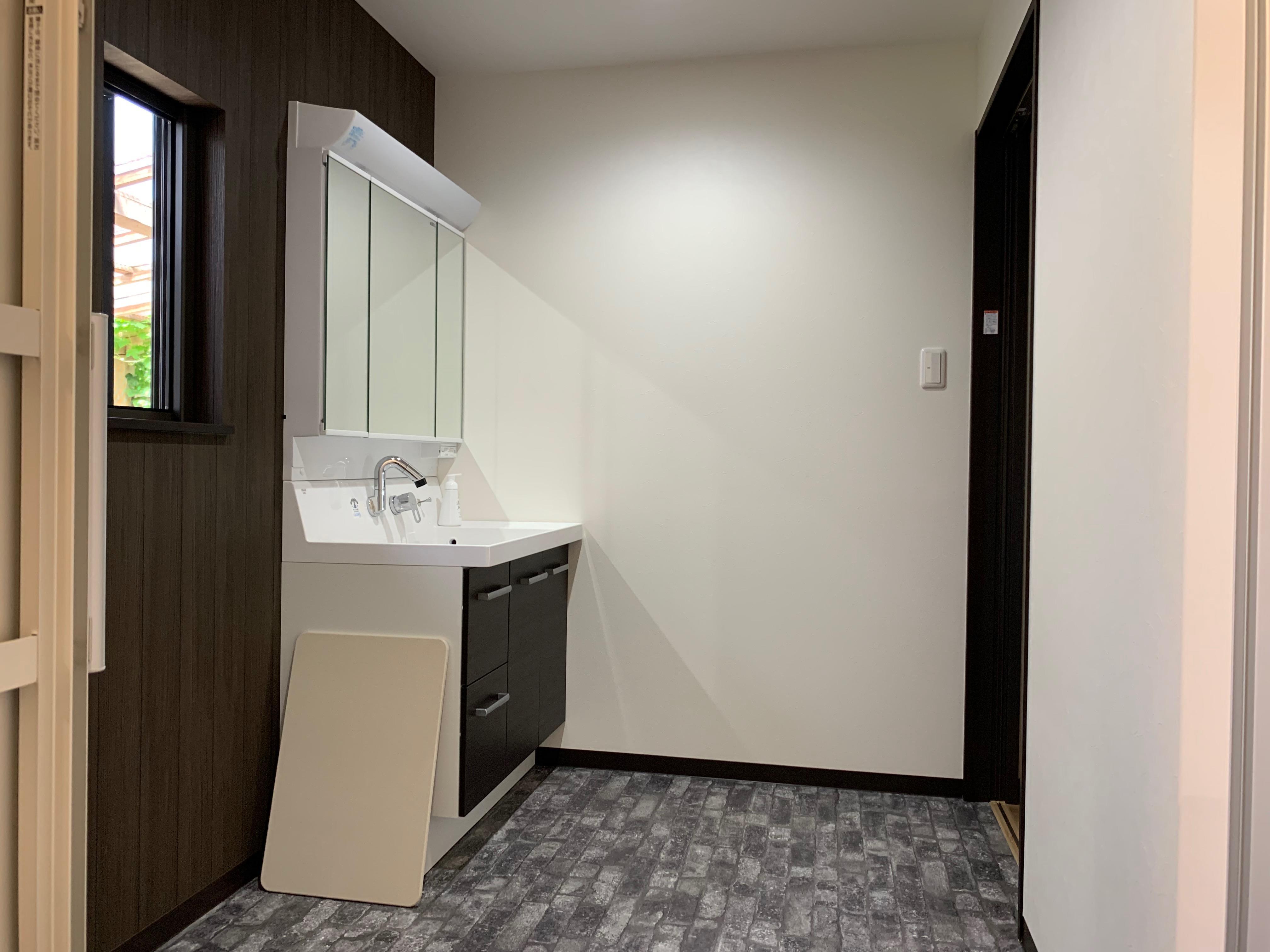 洗面スペースを3帖ほど確保して広く使い勝手のよい脱衣所にしました。