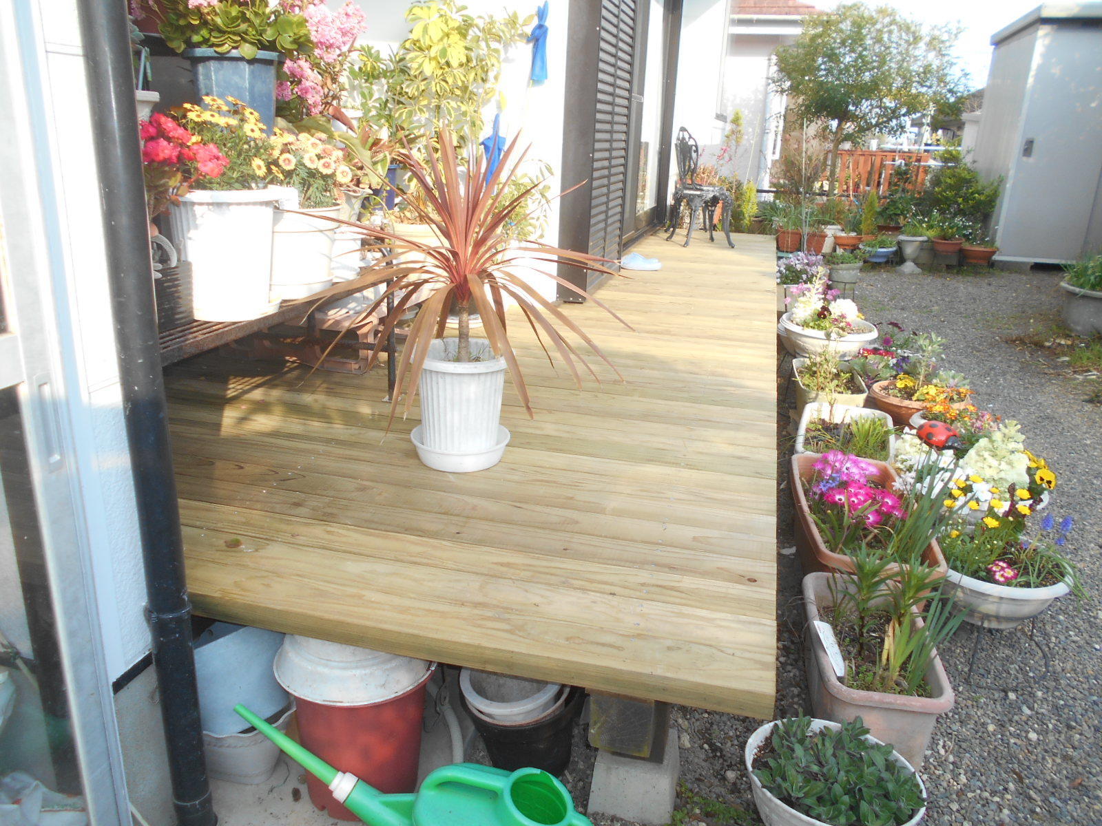 劣化していて危険だったデッキが新しくなり、気持ちが晴れやかになりました。 庭の花の手入れなどガーデンライフが安心してできそうです。