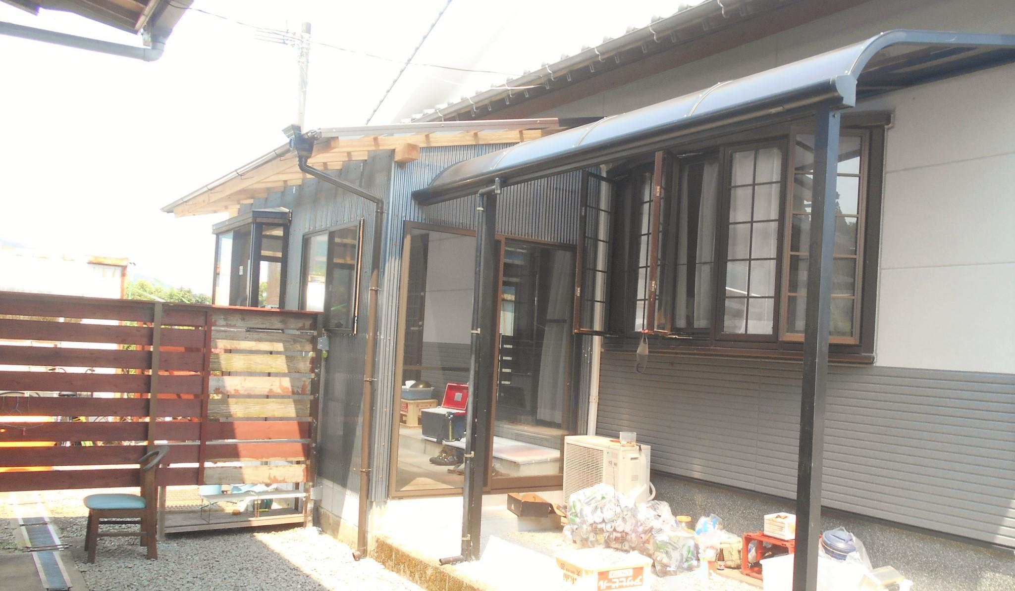 外でしかできない用途の為の流し台設置に伴ってテラスを新設しました。風が強い雨の日でも外への出入りがしやすくなりました。