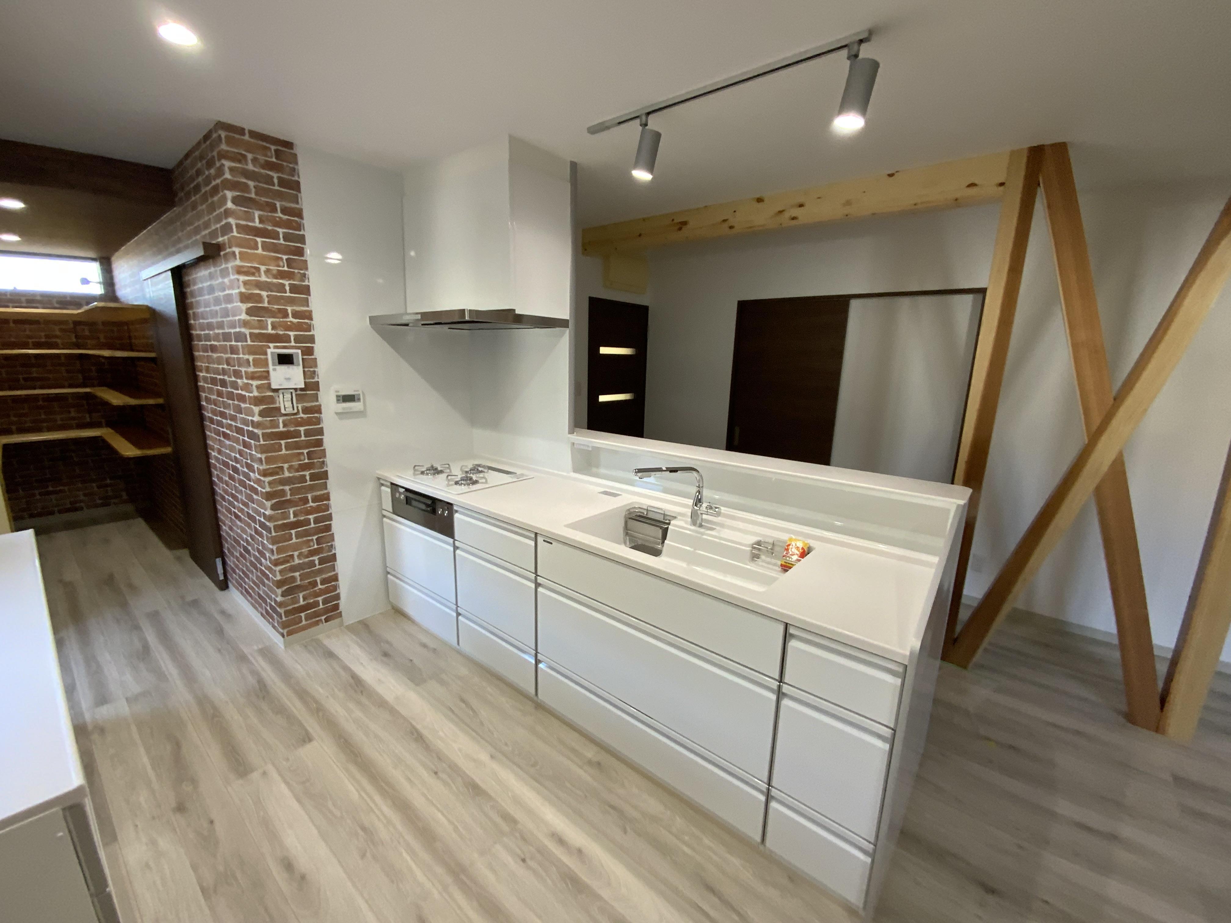 この度は弊社にリノベーションのご依頼をいただきありがとうございました。 大規模リフォームの内容としまして、基礎補強、耐震補強、断熱改修、外壁張替、防腐防蟻処理、など構造部分以外を取り除いて改修し、間取り変更や住設機器をすべて一新されました。 お客様のご要望に沿った間取りを優先しまして、ひとつひとつの空間が広々としており、家族が集まるリビングには、梁補強やお客様のお父様から譲られた材料で化粧筋交を施されオシャレなアクセントが出来上がりました。 今後ともご不便なことなどございましたらご連絡ください。