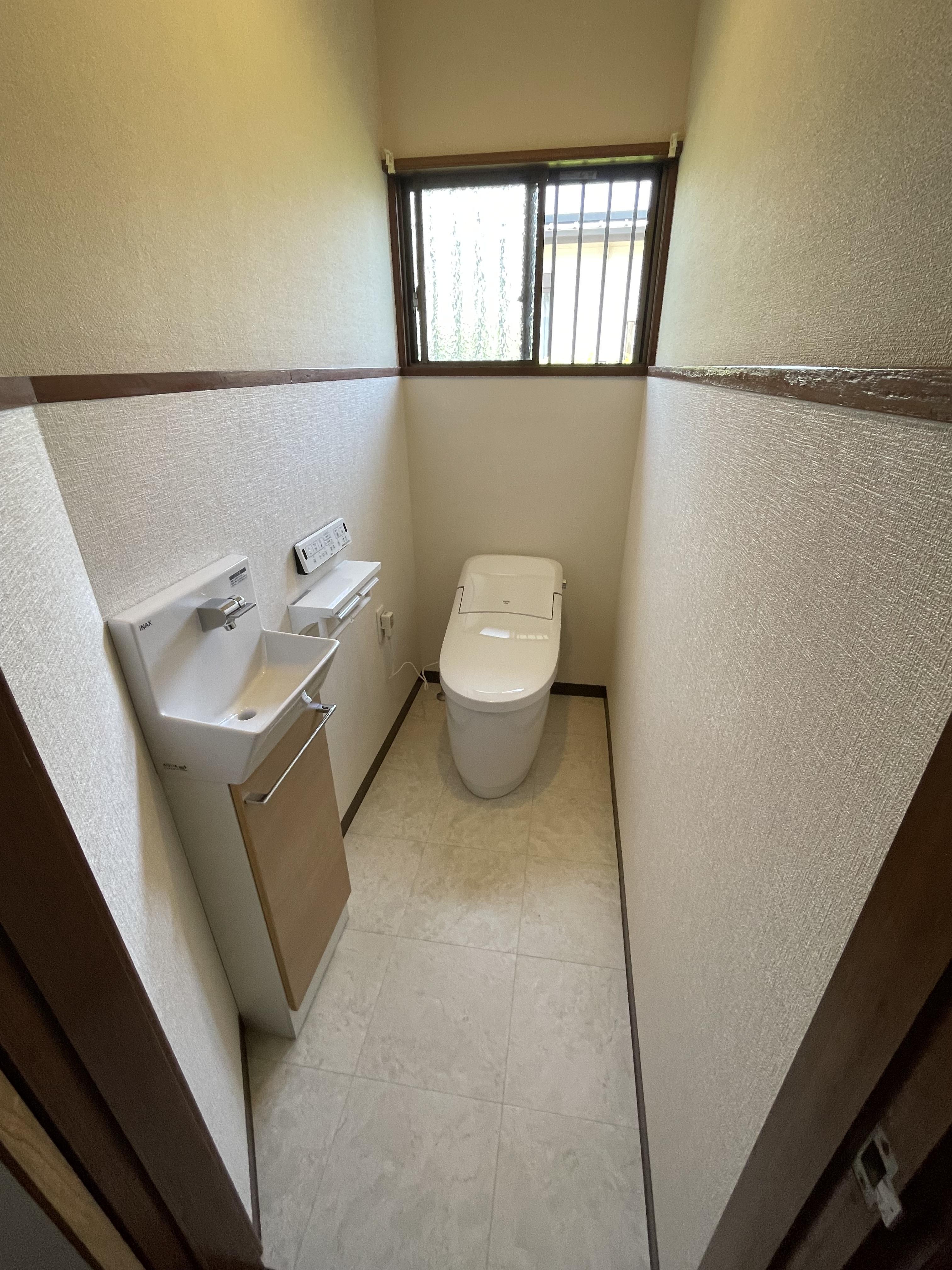 この度は弊社にリフォームのご依頼をいただきありがとうございました。 長年ご使用されていたトイレは老朽化の為以前と比べて節水できるLIXIL製品のトイレに取替えられ、トイレ内には独立した手洗器も設けられました。 今後もお困りになることなどございましたらご連絡ください。