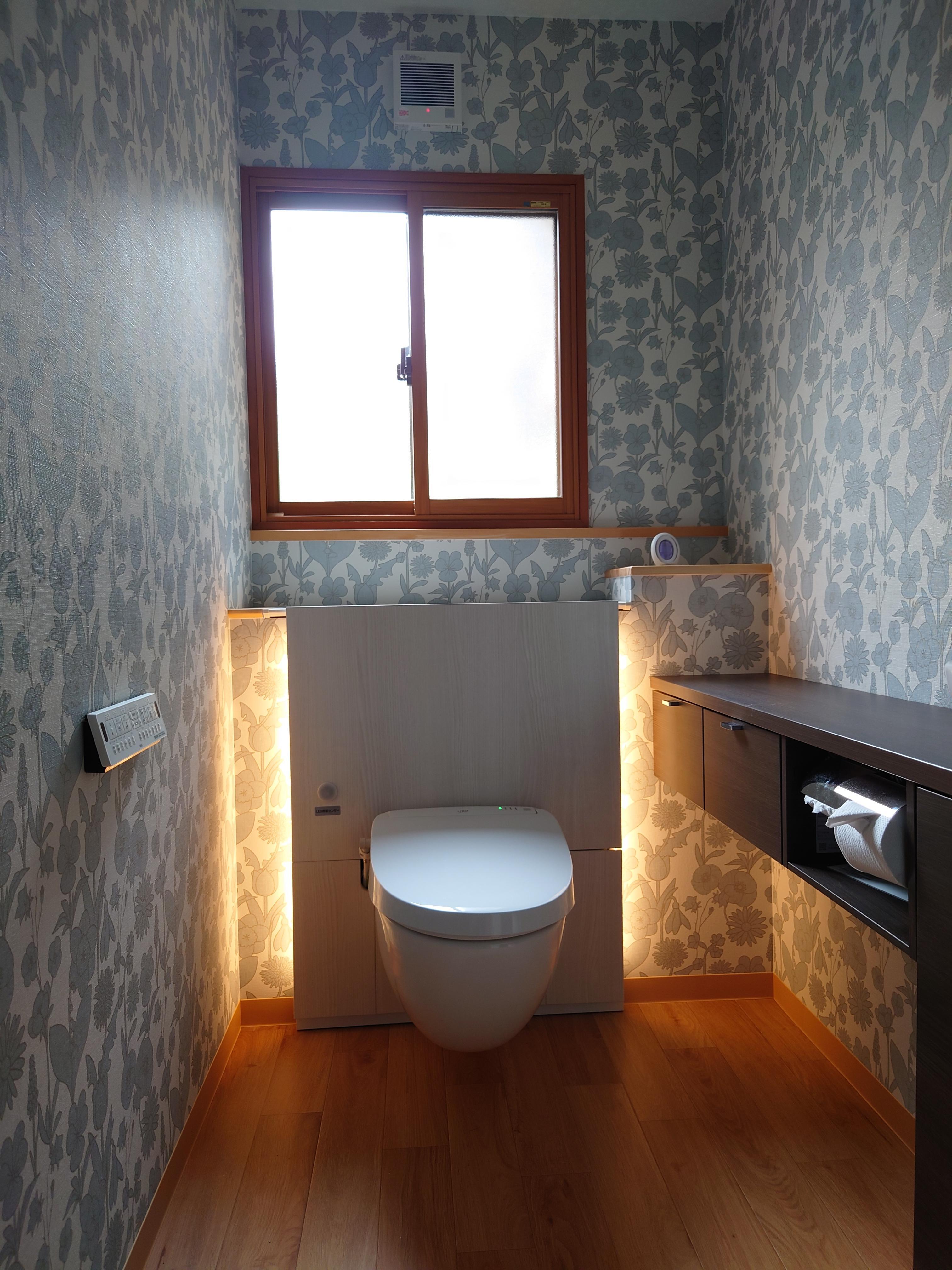また、落ち着き感と広がり感をもたらすLED間接照明がついており、美しいトイレ空間へと一新されました。