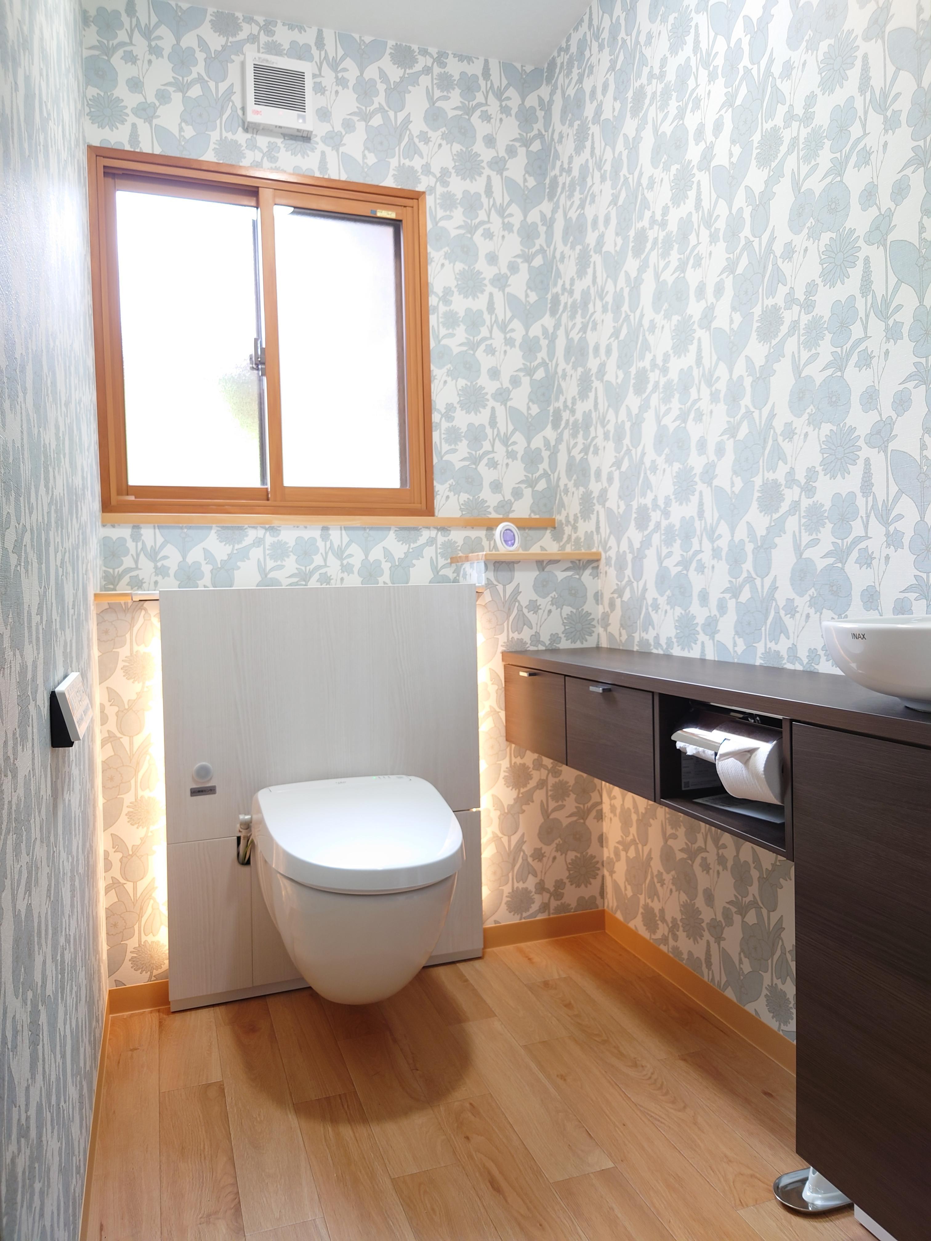 浮いているトイレは足元もスッキリして、掃除も楽にできますね。トイレの小物など置くスペースや収納力がある製品によってごちゃごちゃしがちな空間もスッキリされましたね。