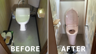 またトイレは、可愛らしいデザインの壁紙を選ばれ、明るく温かみのある雰囲気になりました。
