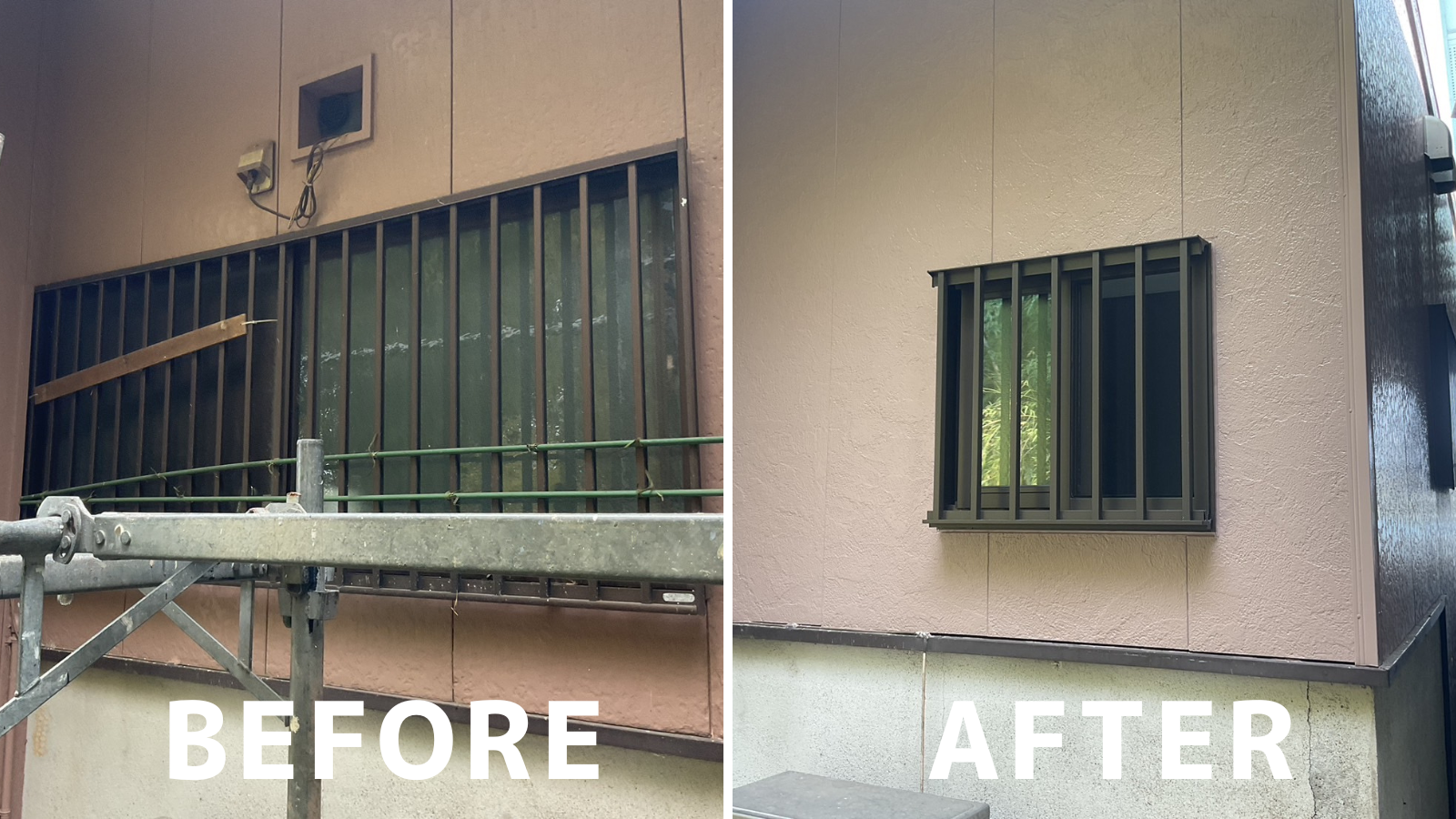 また外部にテラスを設置され、宮崎に多い台風対策として、北面の出窓をシャッター付き引き違い窓に改修されています。