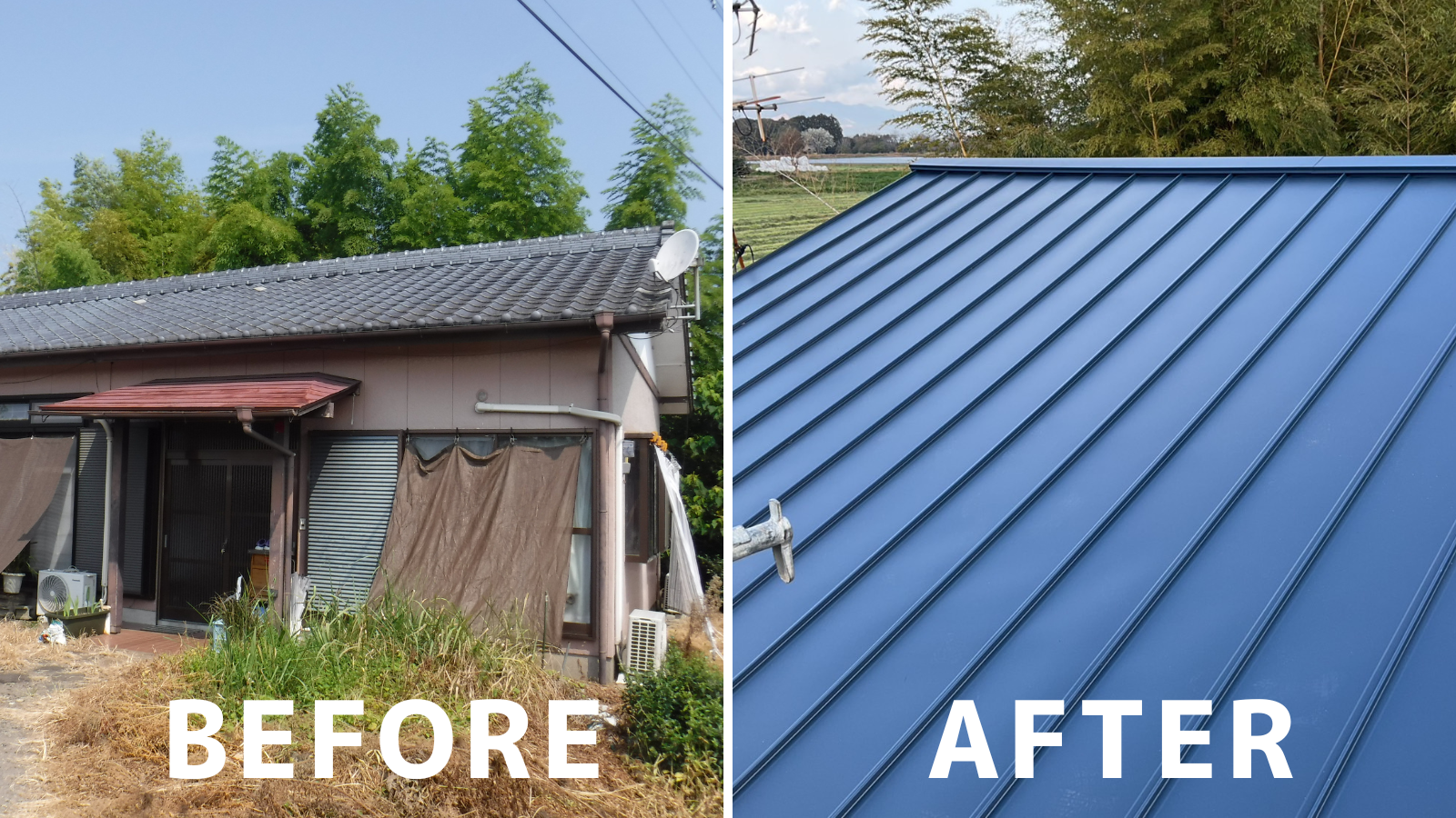 雨漏りしていた屋根瓦を鈑金屋根に張り替え、住宅内部の水回りを中心に改修させていただきました。