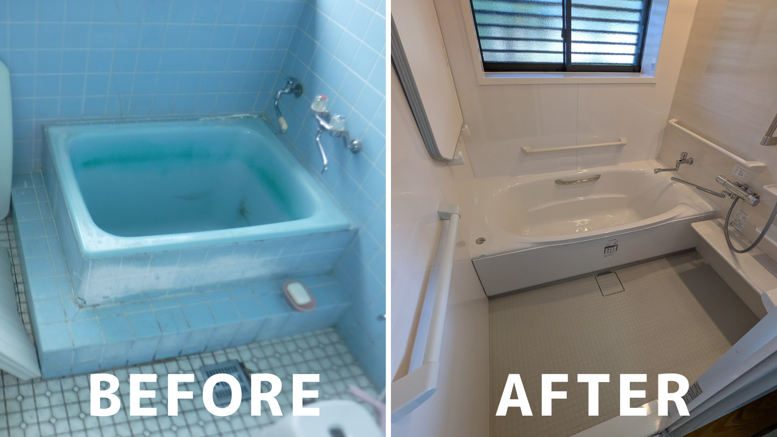 在来浴室からユニットバスに入れ替えました。 熱が逃げやすい大きな窓を小さくして、断熱性がアップ。 ルーバー付き窓を選ばれたので、西日を遮りプライバシーも守られます。 浴室内に手すりを取り付け、浴室入口の段差を解消したので安心です。 ご依頼いただきありがとうございました。