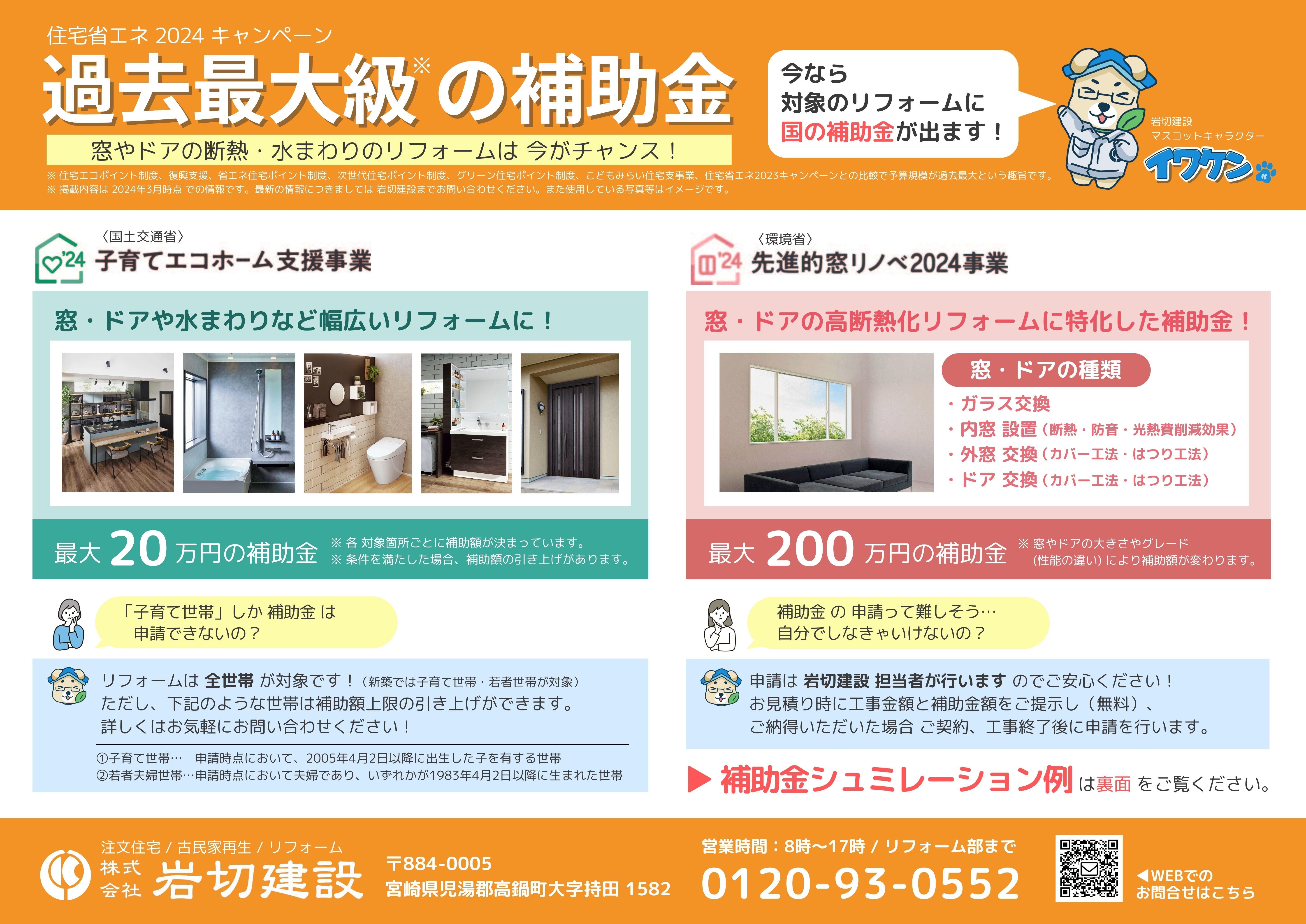 ※窓・ドアの高断熱化リフォームに特化した補助金!