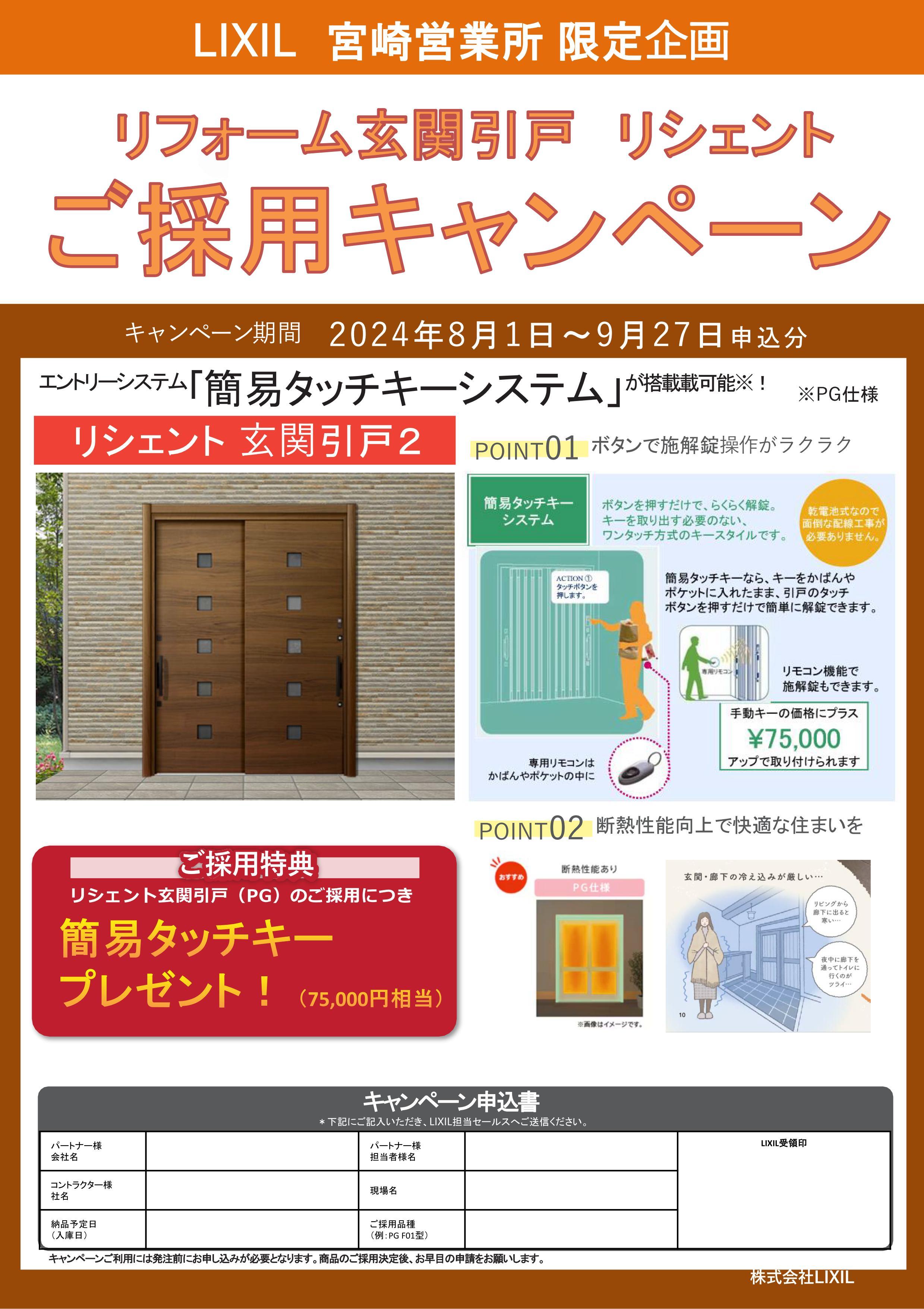 上記期間内にリフォーム玄関引戸 リシェント(PG仕様)をご採用で