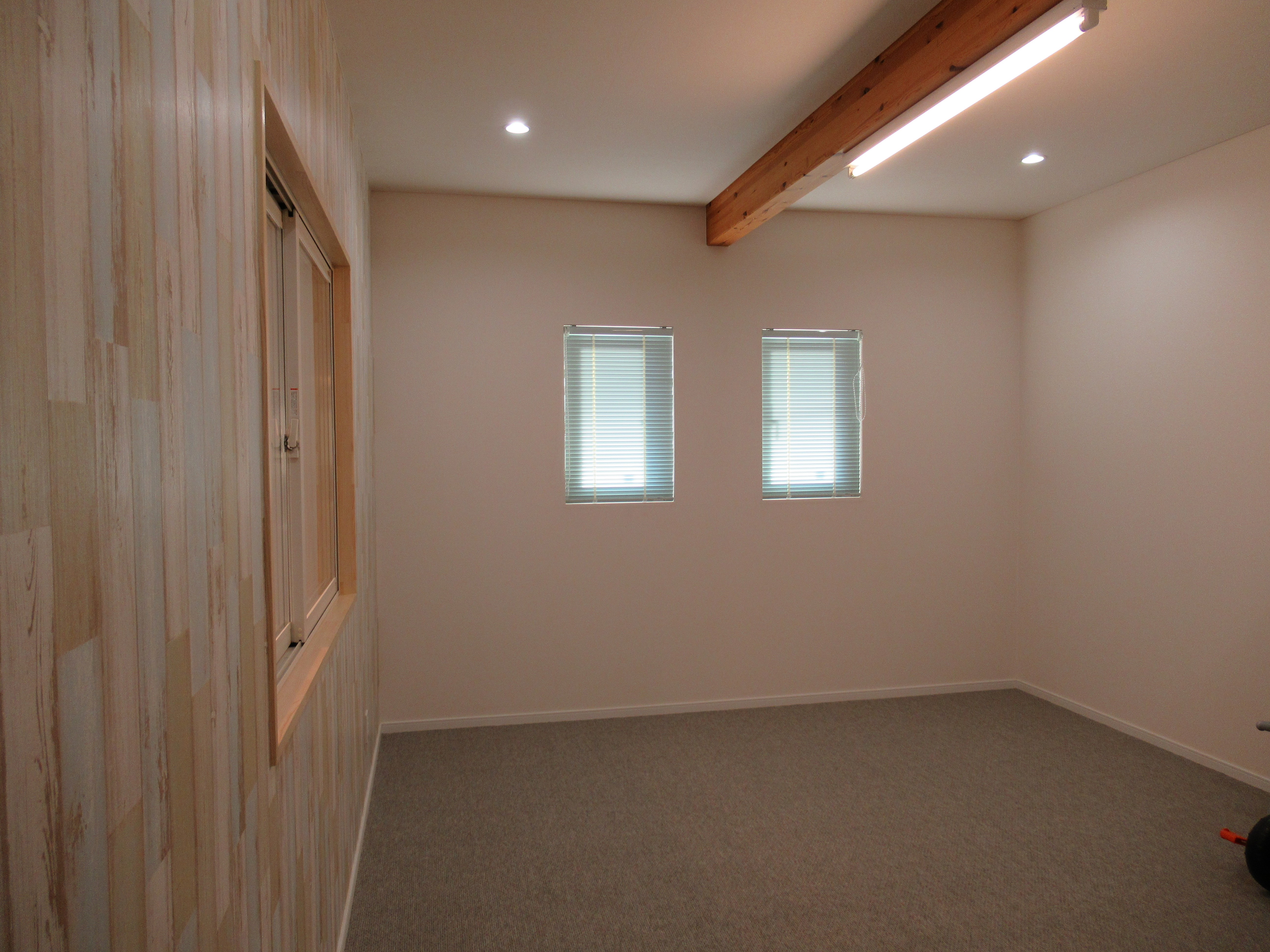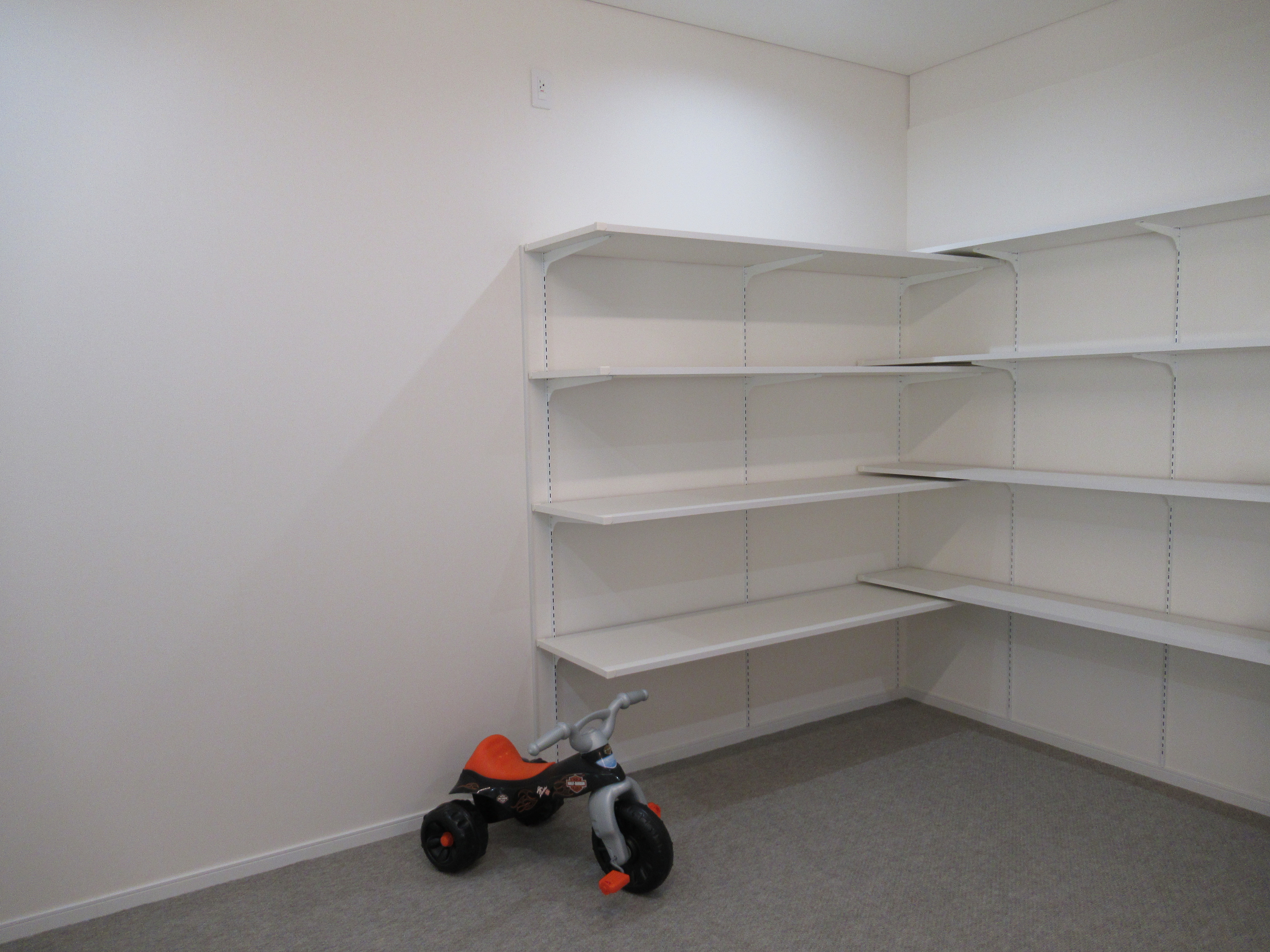 家族みんなの荷物を、スッキリとまとめて収納できるお部屋になりました。 床をじゅうたんにしたので、納戸としてだけでなく、 子供たちのプレイスペースとしても使いやすいお部屋となり、 おもちゃも、遊んだら収納する習慣が付きそうです。