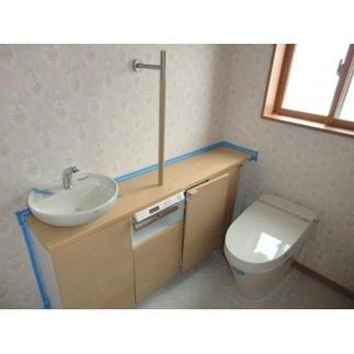 小便器用と洋式便器用で2空間あったところを1つにしました。スペースを広くとることができ収納も充実。ゆったりと過ごせる広さとなりました。