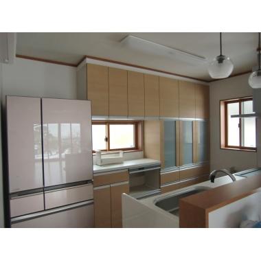 キッチンと居間で分かれていた空間を1つにし床暖房をいれました。対面キッチンにすることで家事の合間に家族の様子がうかがえるようになりました。
