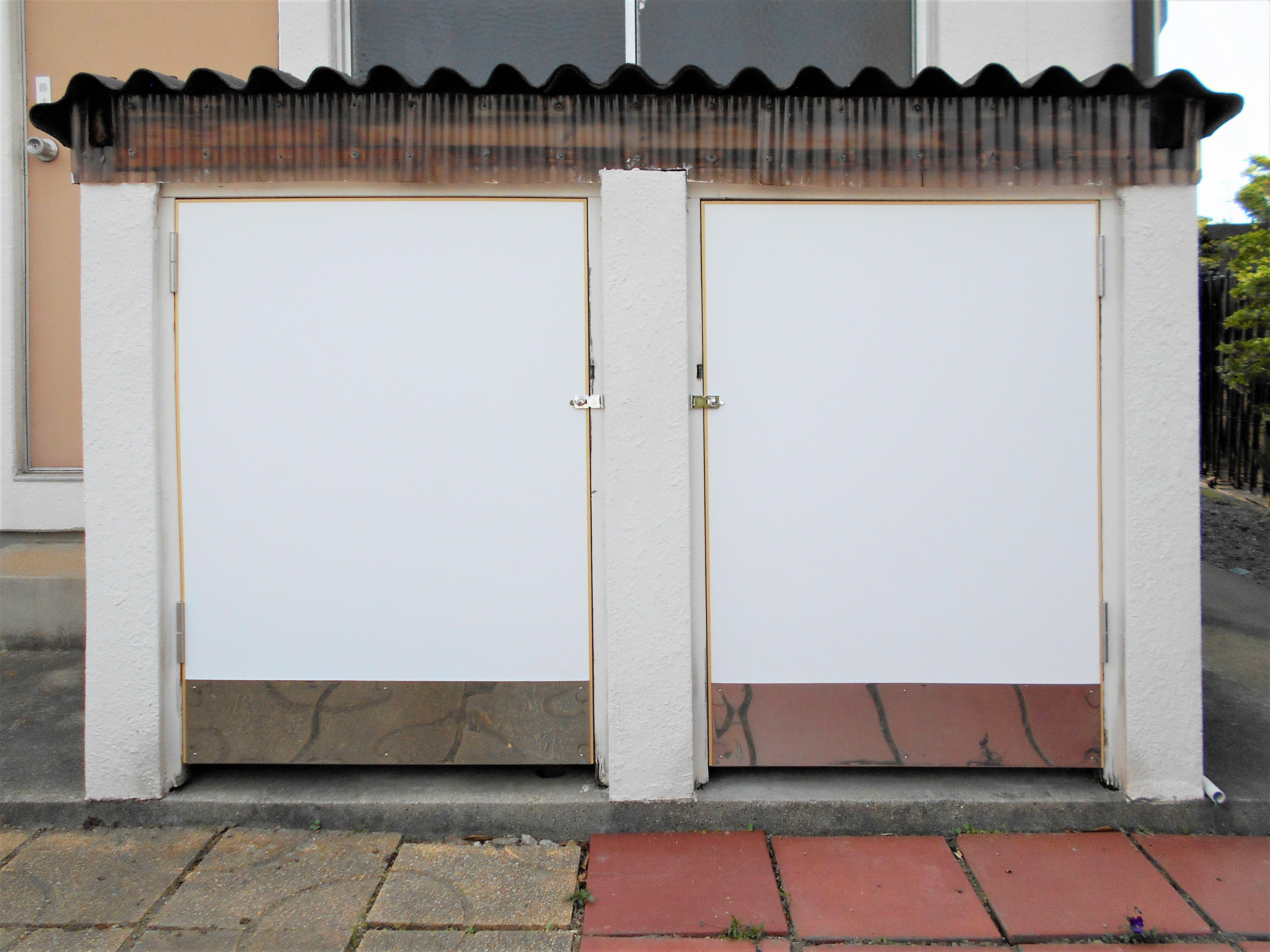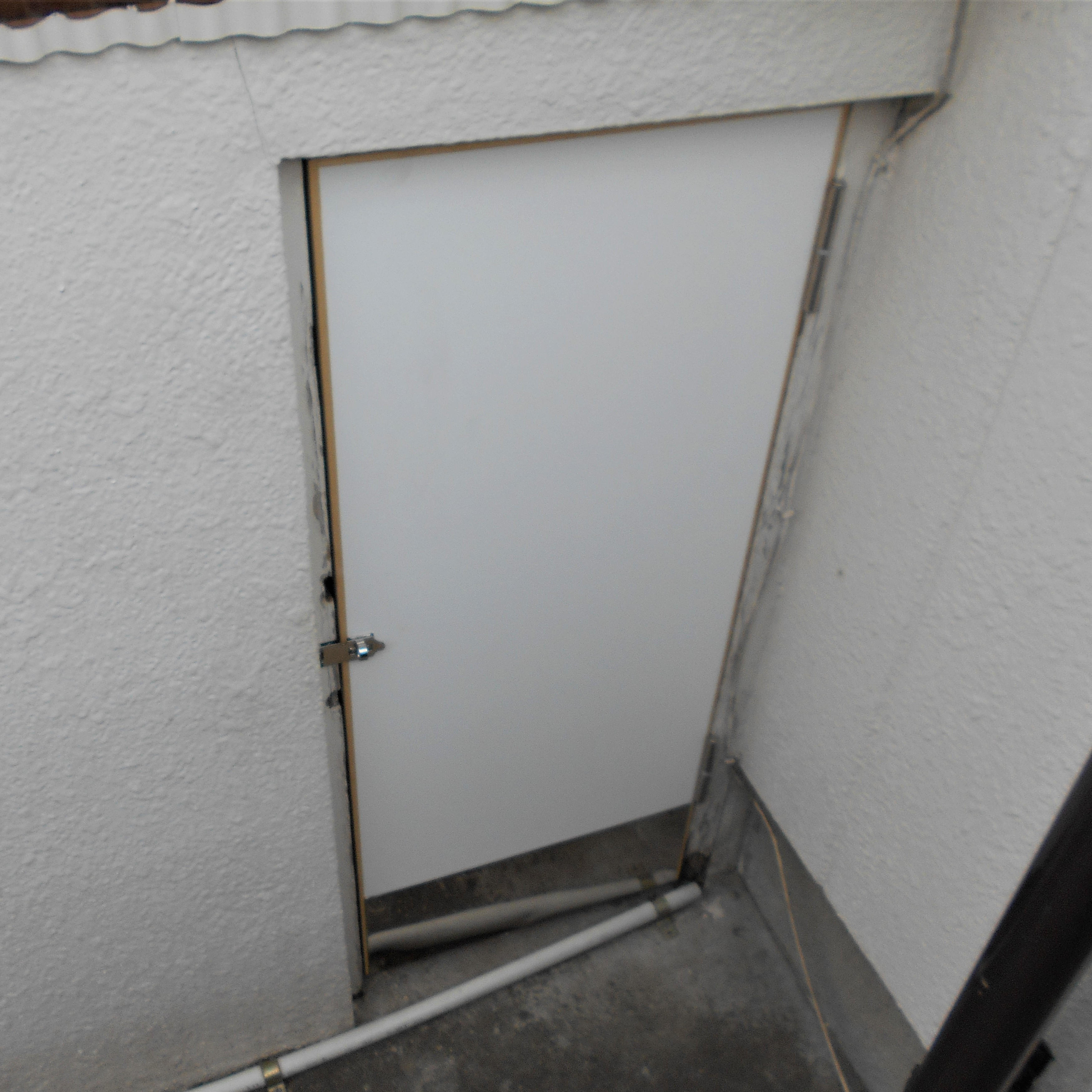 今回のリフォームでは、扉の交換と雨水が当たりやすい扉の下部にステンレスを張ることで、雨水が染み込まないように。長く使い続けられる物置に生まれ変わりました。
