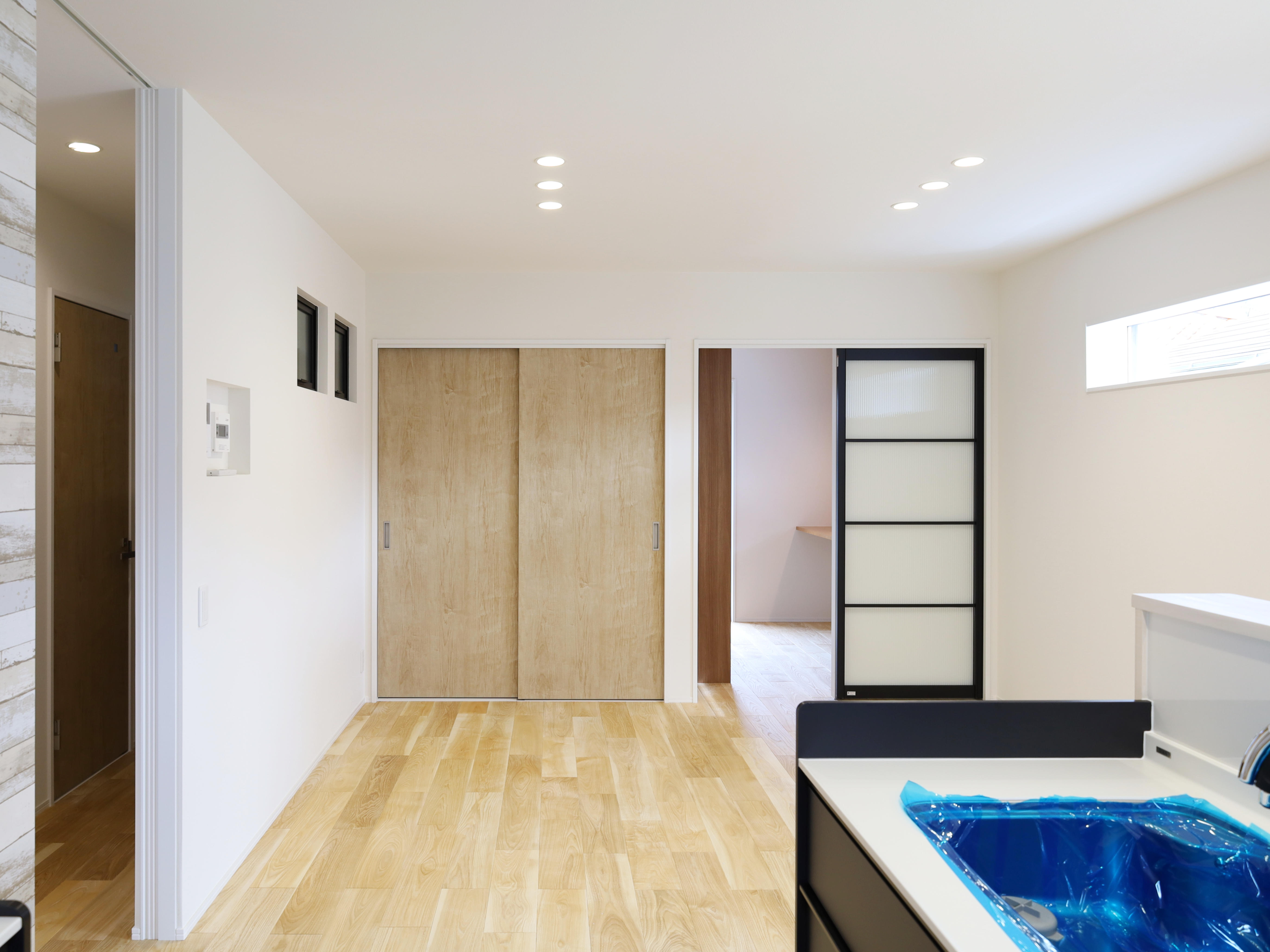 外装にはSWリフォームパネルを重ね張り。既存の外装材を壊さないので、廃棄物処理の費用が少なくなり、新築や建替えに比べてコストを抑えることができます。天井には吹込みグラスウール断熱材。軽い断熱材なので天井への負担が少なく、厚く充てんできます。1階床下には吹付け硬質ウレタンフォーム。落ちずに密着するので、床下の隙間を埋めることができ、気密を高めます。玄関ドアと窓サッシは交換。断熱性能を高めて、イメージも一新しました。