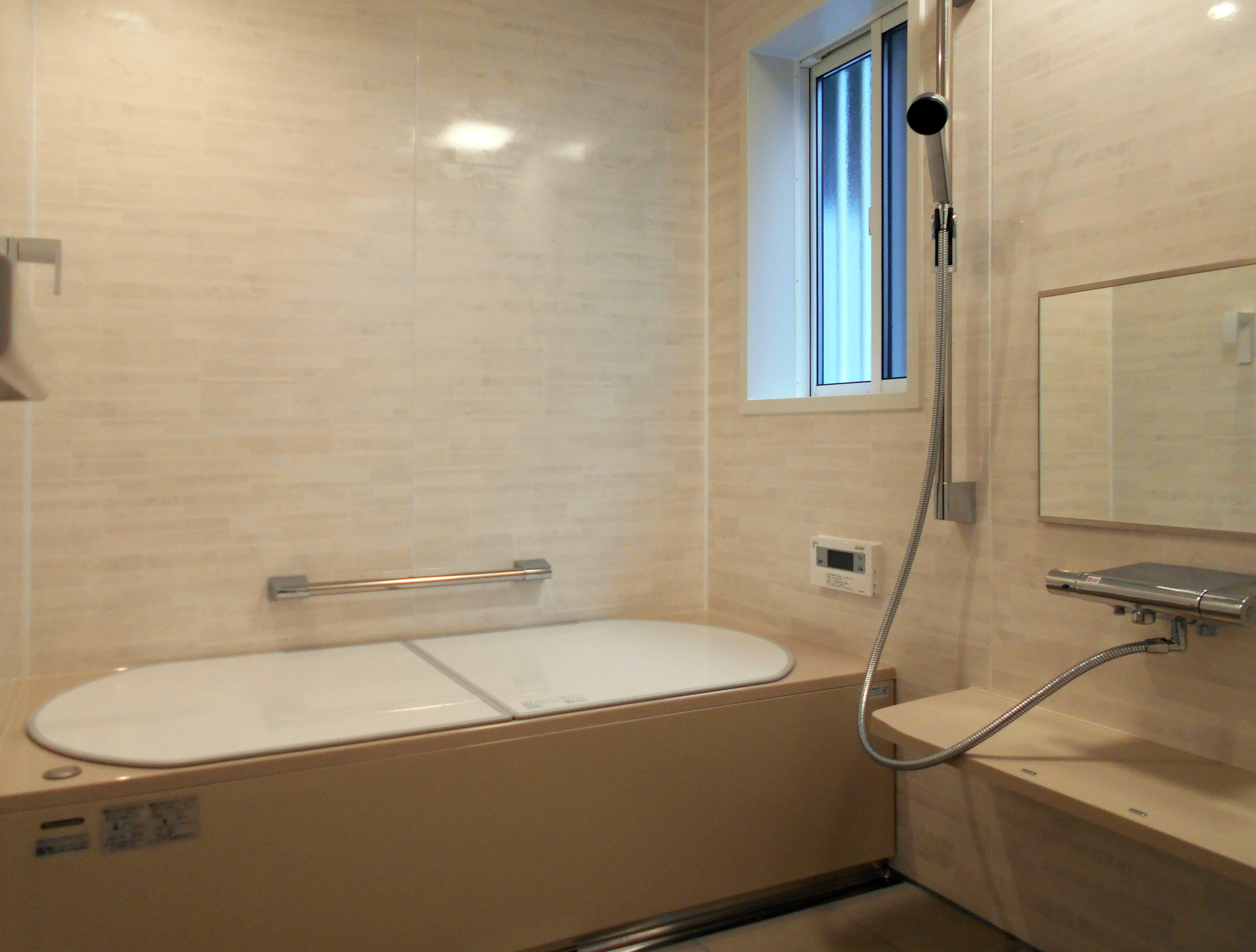 今回は浴室の交換と出窓を通常の窓に変更するリフォームを提案。浴室は、お客様がこれまで使っていた同じメーカーのシステムバスを採用。頑丈なフレーム構造の架台で、地震の揺れにも負けない、強い浴室に。窓は既存の窓を撤去後、周囲の外壁を切り取り、新しい窓サッシを取り付け。窓を小さくしたことによって断熱性能がアップ!