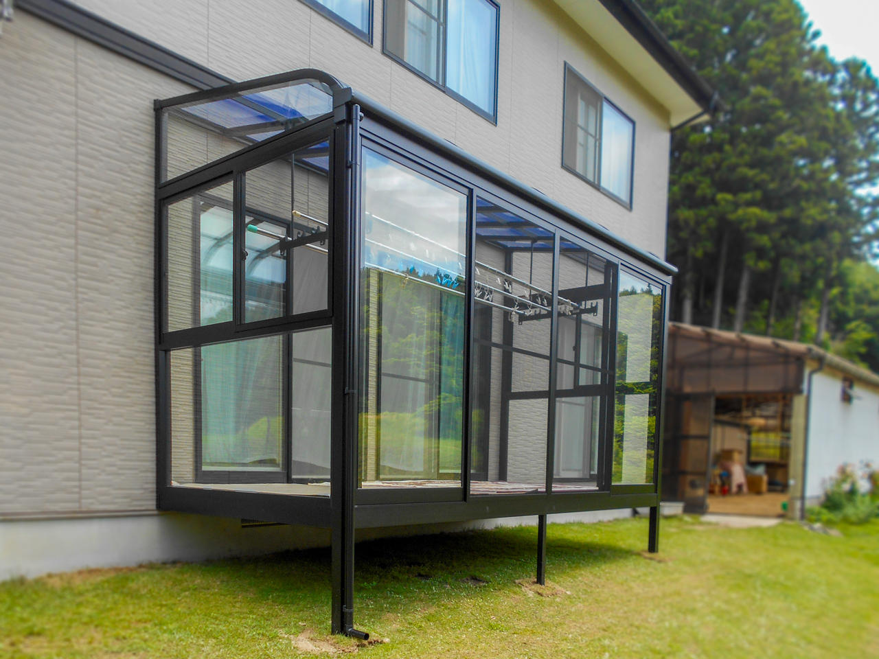 今回提案したのは、LIXILのサンルーム「サニージュ」室内と床続きのタイプ。これからの洗濯物は、洗濯室から廊下、和室を通ってサンルーム移動できるように。移動する距離も短くなり、外に出ることなく洗濯物を干せるように。毎日の家事が少しラクになりました。