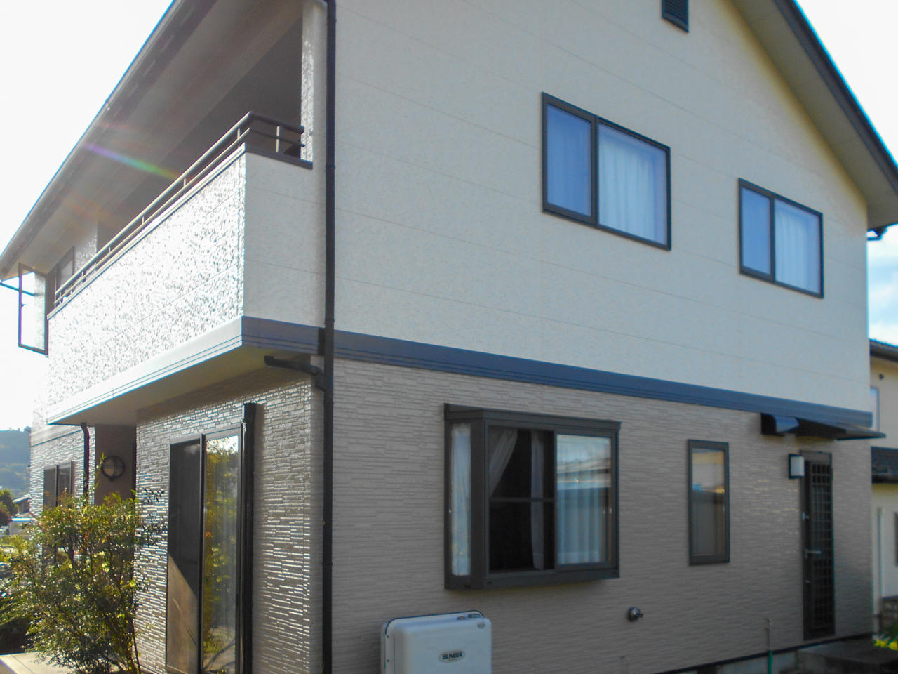 「古くなってきたのでキレイにしたい!」とリフォームのご相談をいただきました。外壁には色あせが見られ、シーリングもひび割れていたため、今回は屋根・外壁の塗装とシーリングの打ち替えを提案しました。いままでと同じ色に塗装して、新築時のようなツヤのある美しい外観になりました。
