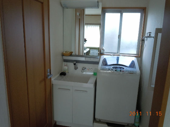 洗面台と洗濯機が別の部屋にあって、不便でしたが浴室の隣に並べて設置できたので、とても喜んで頂けました。 INAX洗面化粧台 ピアラ