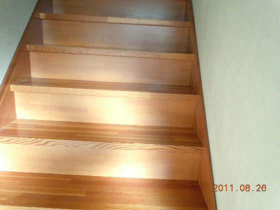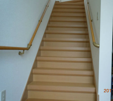 階段をリフォーム!今ある階段を生かして、カバー工法で丁寧に仕上げました。まるで新品みたい!壁紙を張り替えて手すりも付けました。