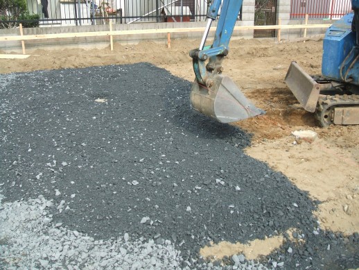 基礎の内部に砕石を敷き込み、住宅基礎に必要な地耐力を出します。