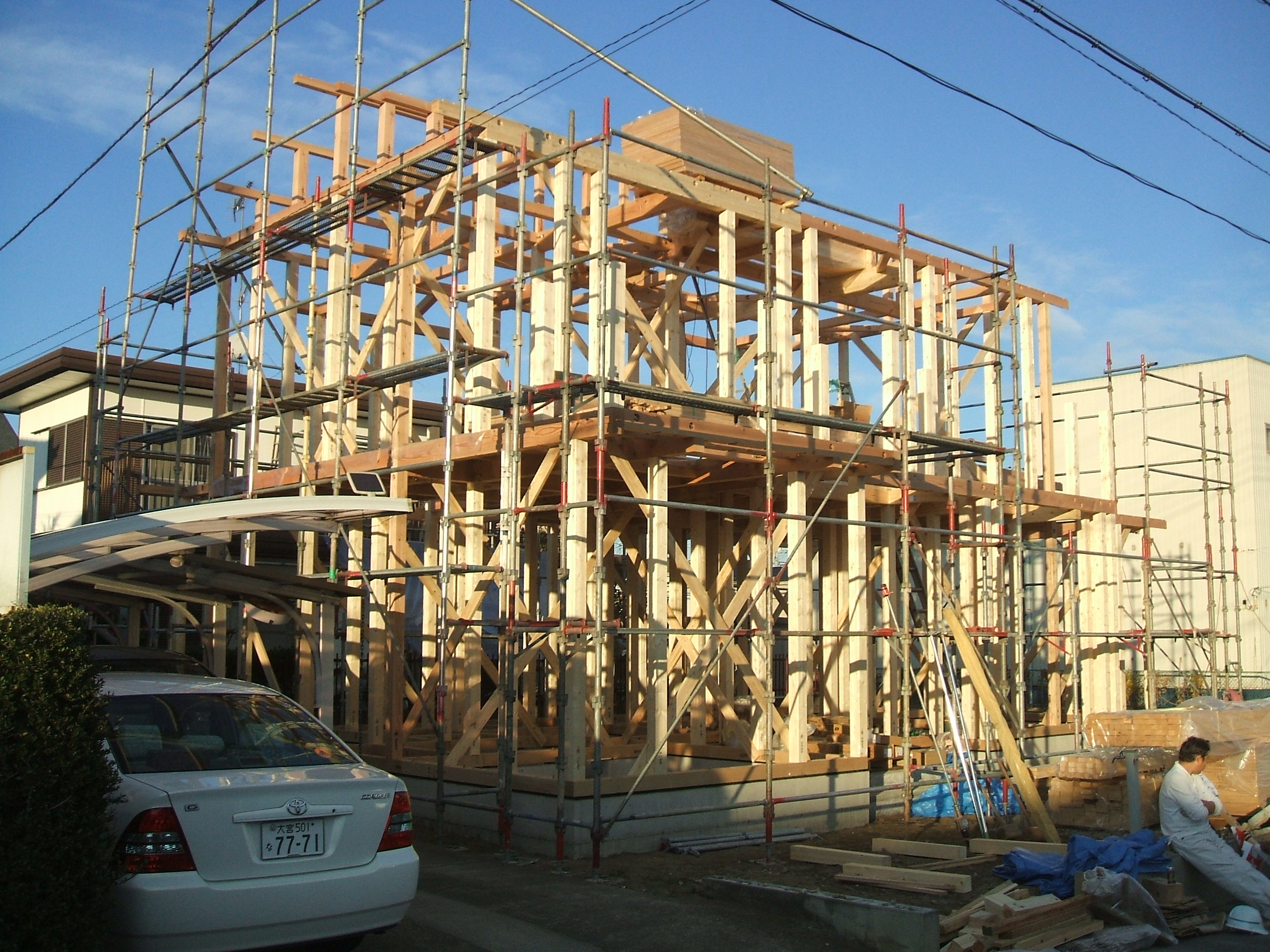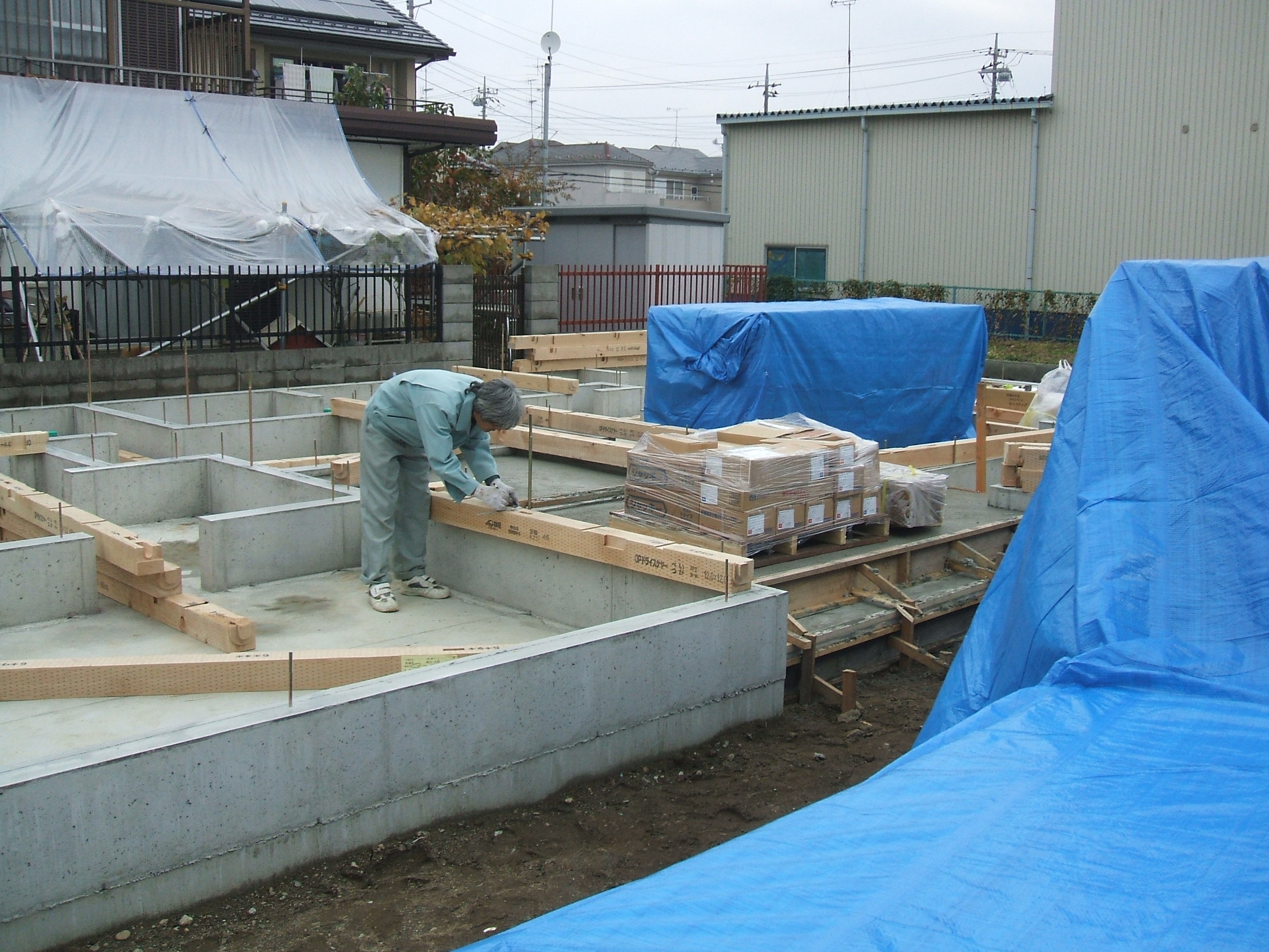 基礎が完成すると、いよいよ大工さんの出番です(^O^)