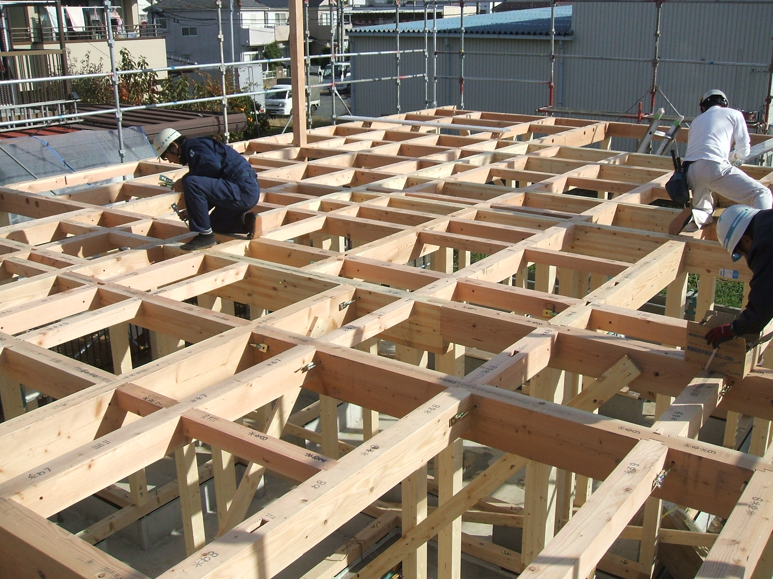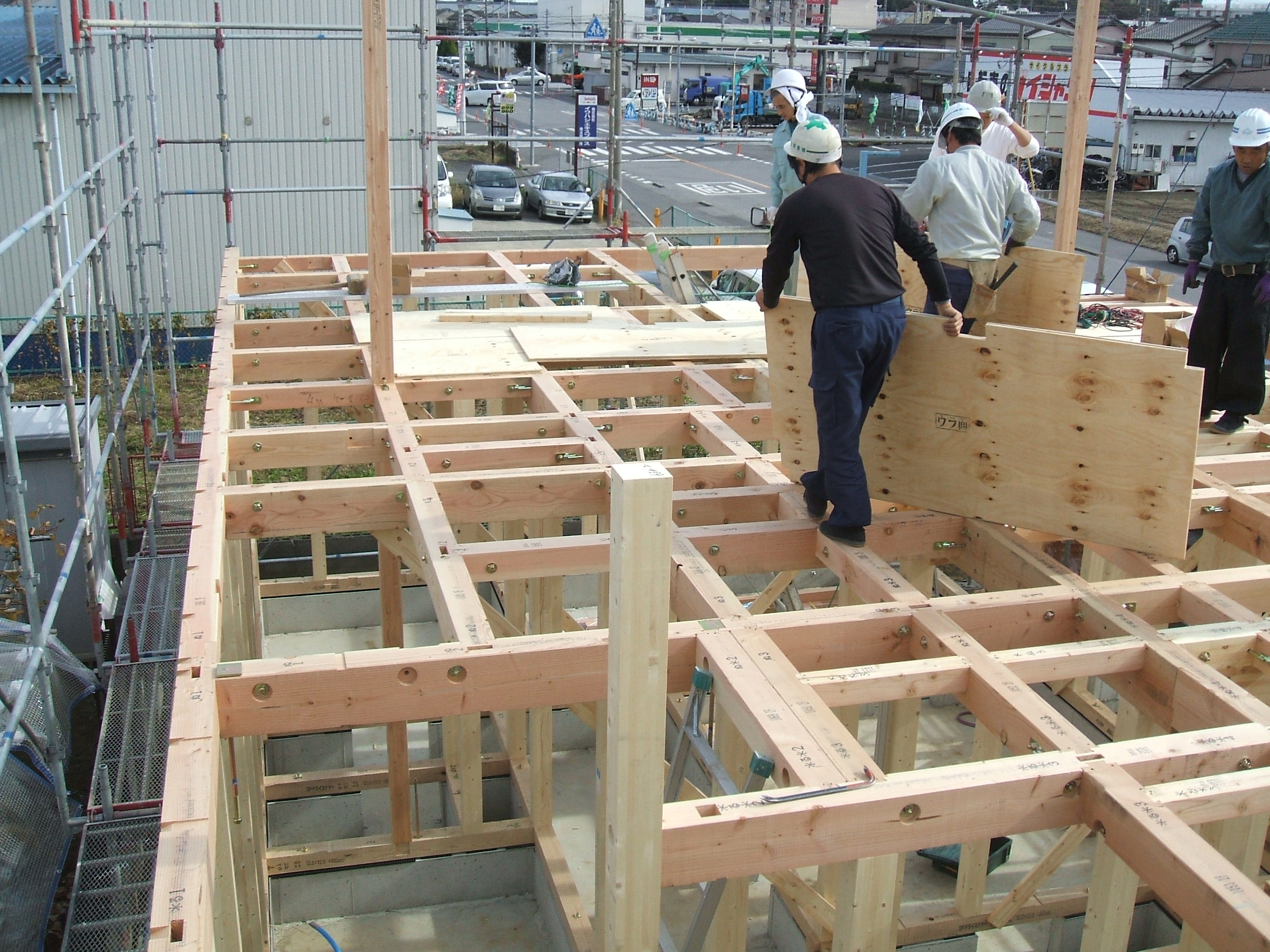 チームワーク良く、上棟作業が進んでゆきます p(^-^)q
