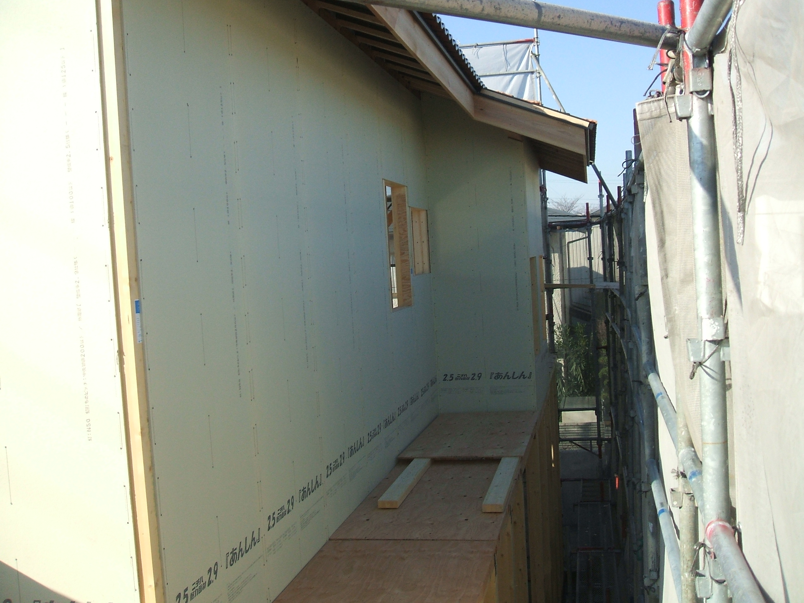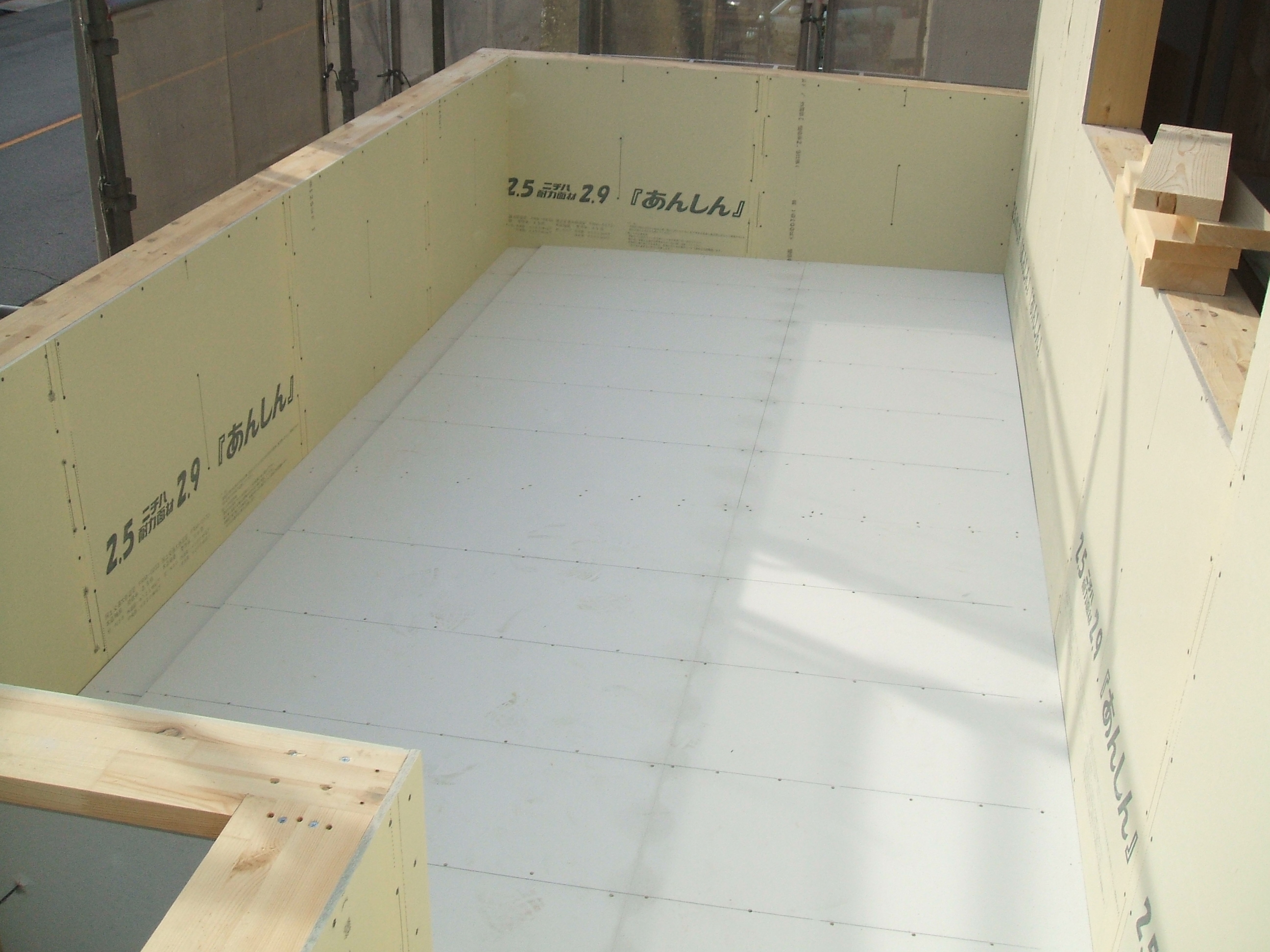 防水下地にケイ酸カルシウム板(ケイカル板)を貼ります。