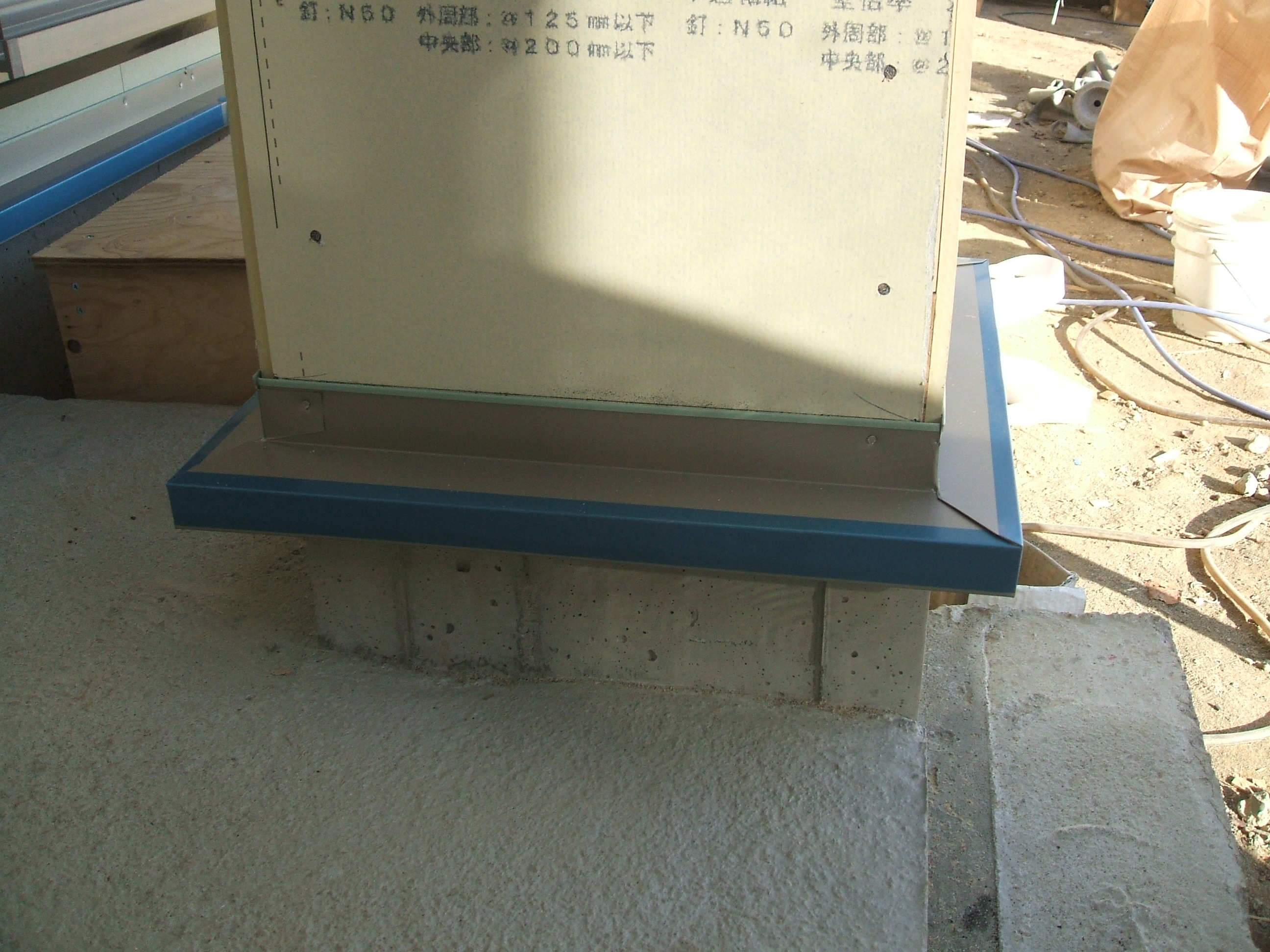 外壁から伝わった雨が土台に侵入しないように、土台水切りを施工します。