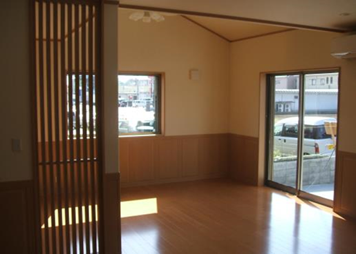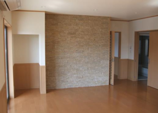 アクセントとして、リビングの壁にはサイディングを使用し、お部屋に高級感を演出しました。