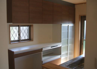 食器戸棚もシステムキッチンと同じカラーで統一。
