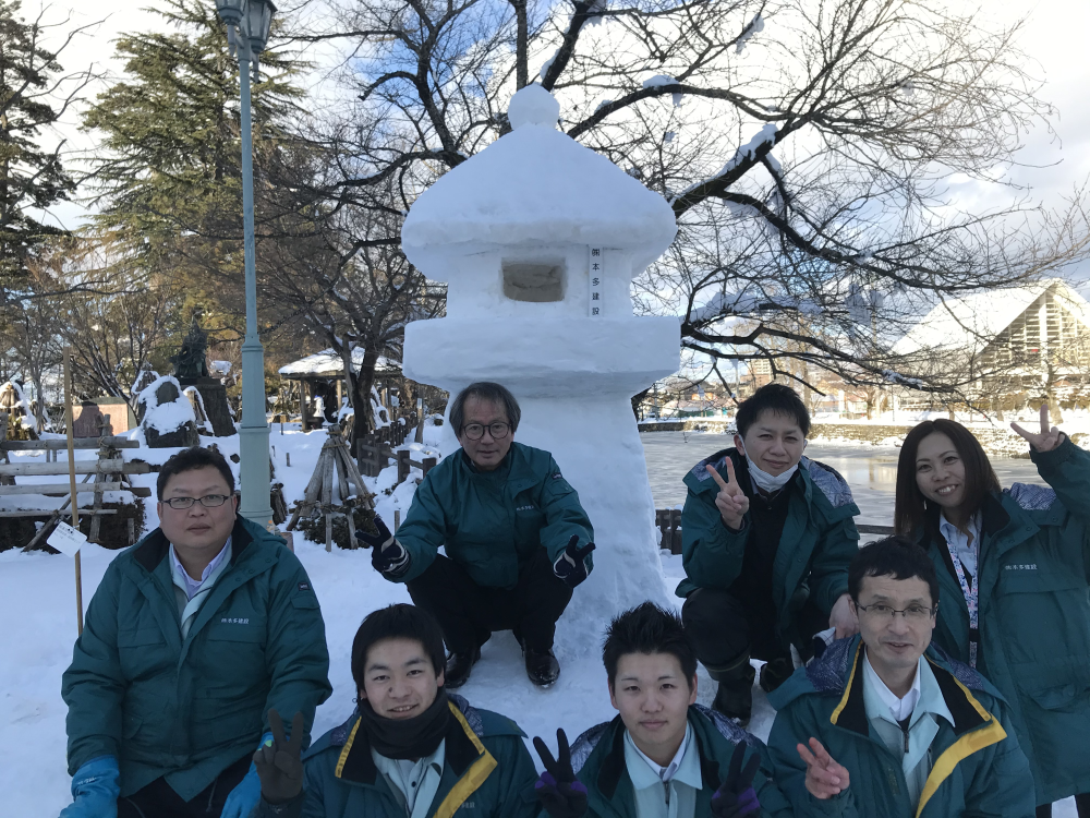 おまつりに出掛ける方は、良かったら味のある本多建設の雪灯籠を見つけて下さいね。