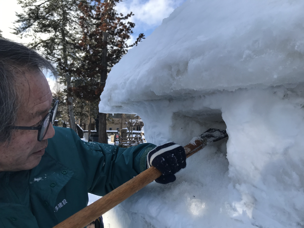 無い雪を持ってきて固めた雪は、少々茶色ががかっていますが;