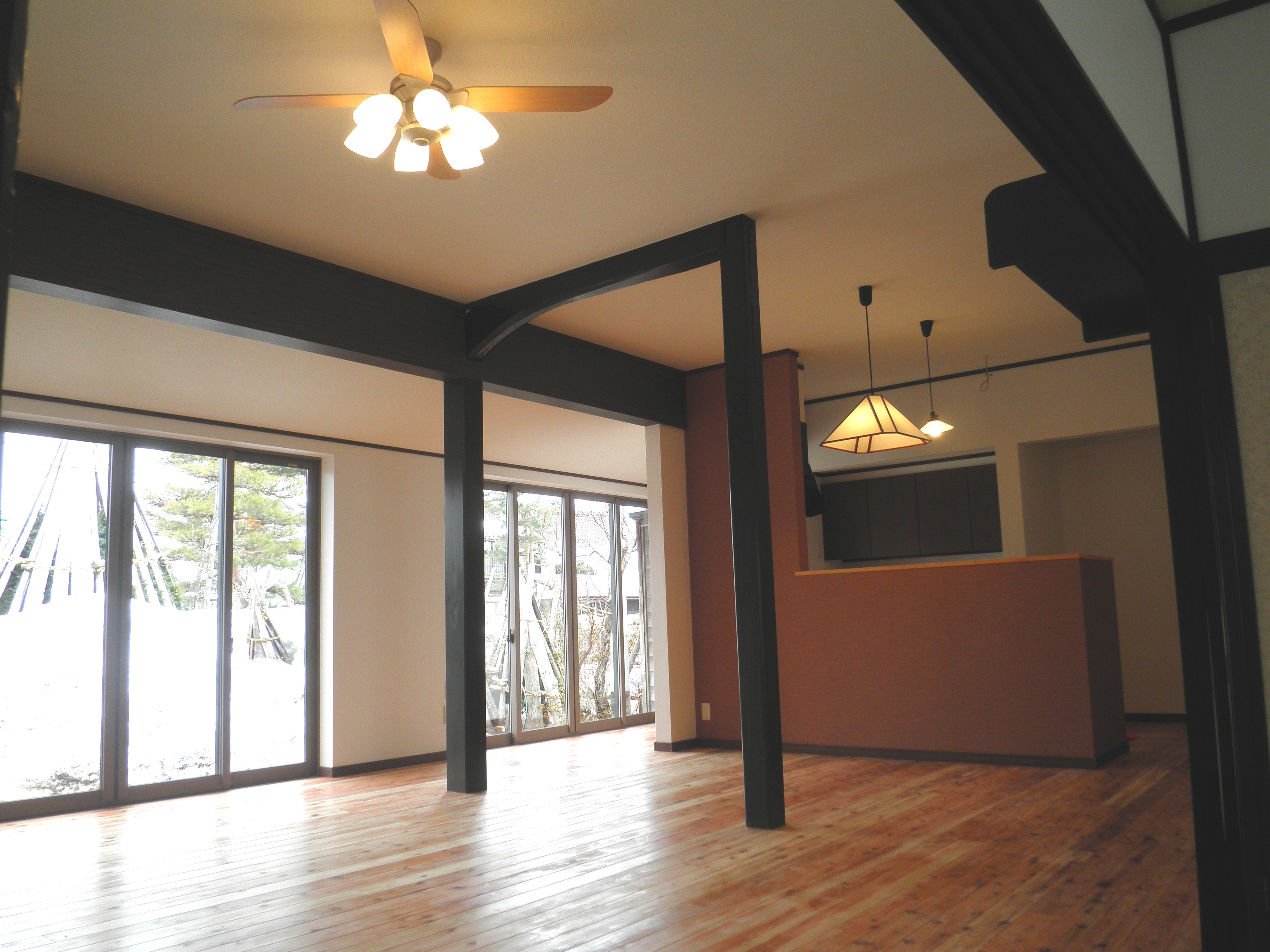 雪が積もる冬から始まった工事で大変ご不便をおかけしましたが、施主様が同じ敷地内で商売をされている為、常に連絡を取りながら工事を進めることができました。工事中、圧雪の為に屋根の雪の後片付けが大変でしたが、無事お引き渡しすることができました。 既存の建具を多数再利用し、元々のお宅の風合いを残しながら、快適なお住まいへと生まれ変わりました。 たくさんのご協力をいただき立派なお宅になりました。ありがとうございました。