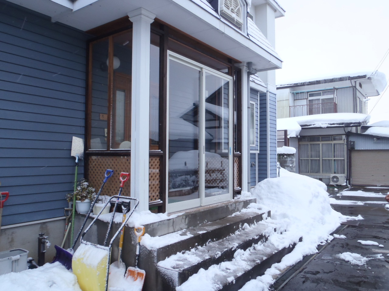 今まであった風よけにあわせて、風除室を作ってもらいました。吹雪の時もこれで安心です!ありがとうございました。