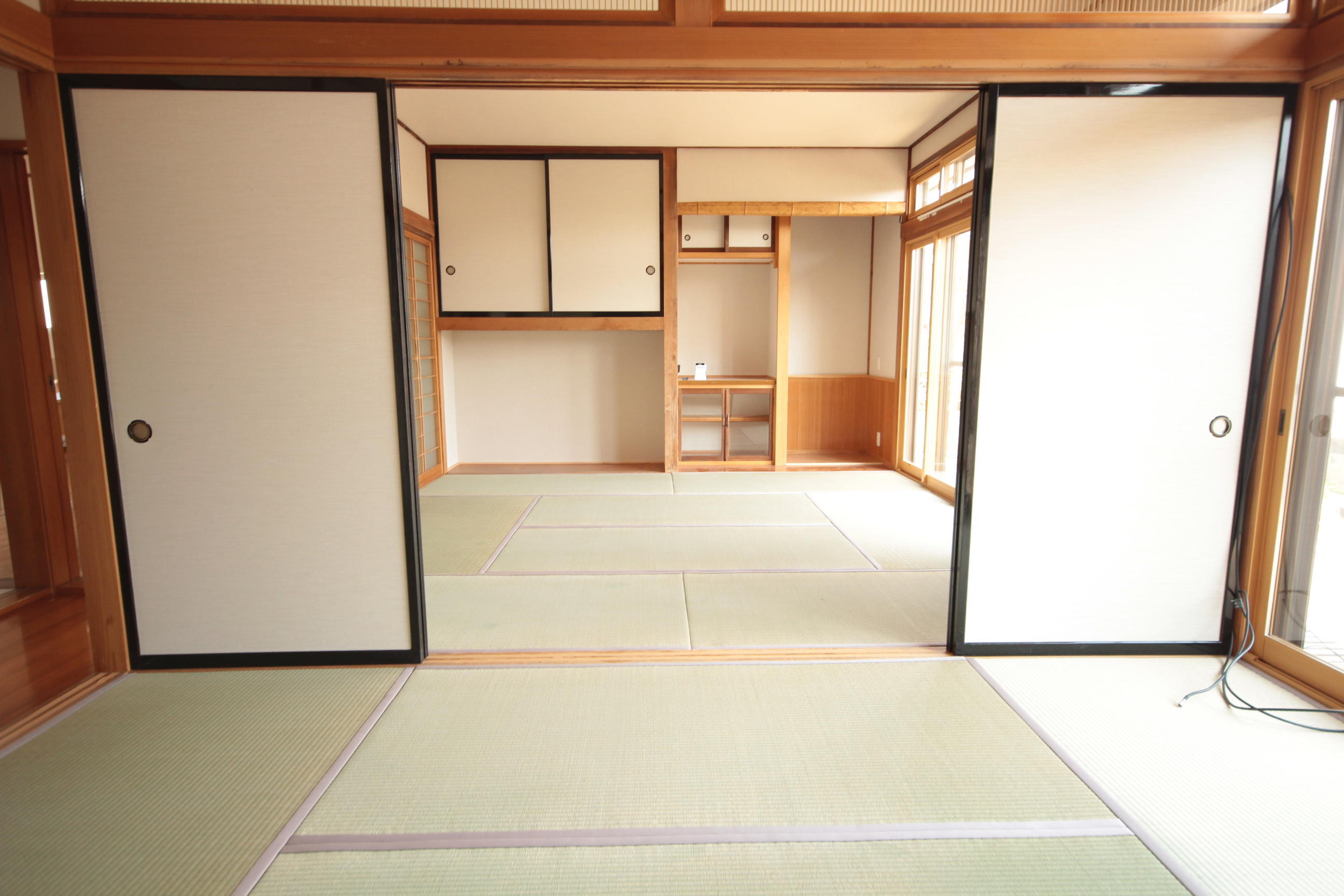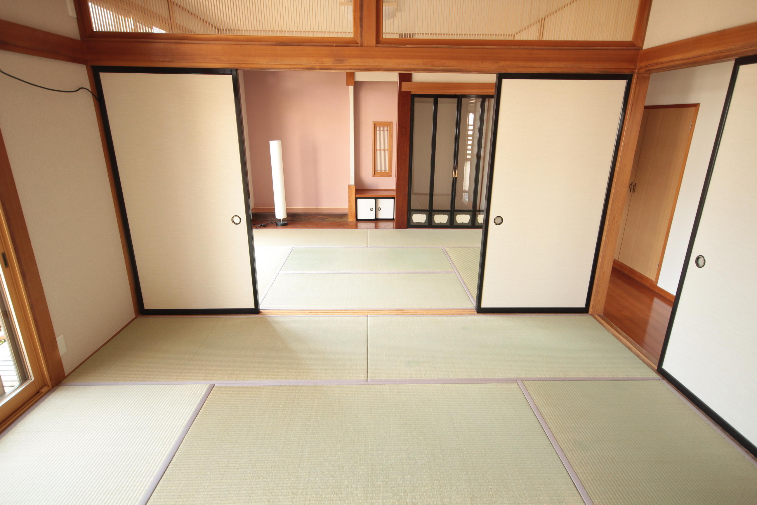 和室の続き間の改修工事を行いました。天井と壁のクロスとふすまを張替え、畳は表替えしたことにより、とても明るい雰囲気になりました。さらに、サッシの内側にインプラスを取り付けたことで冬は寒かった居間ですが、温かく過ごせるようになったと、施主様にも喜んでいただくことができました。