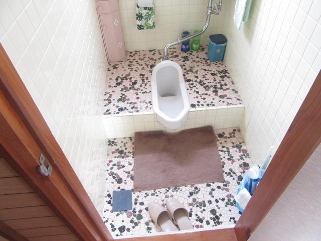 和式のトイレを洋式に取り換え、トイレ内の段差を解消しました。タイル貼りだった室内もクロスに貼り換えました。