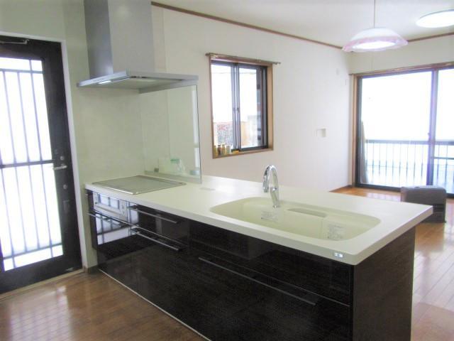 家族構成が変わり、収納を重視した使い勝手のいいキッチンにしたいというご要望があり、リフォーム工事をさせていただきました。壁に面していたキッチンを対面式のキッチンに変更し、壁には備え付けの食器棚や収納を設置したことで収納力が増しました。さらに壁と天井のクロスを張り替えたことで、より明るい空間へと生まれ変わりました。