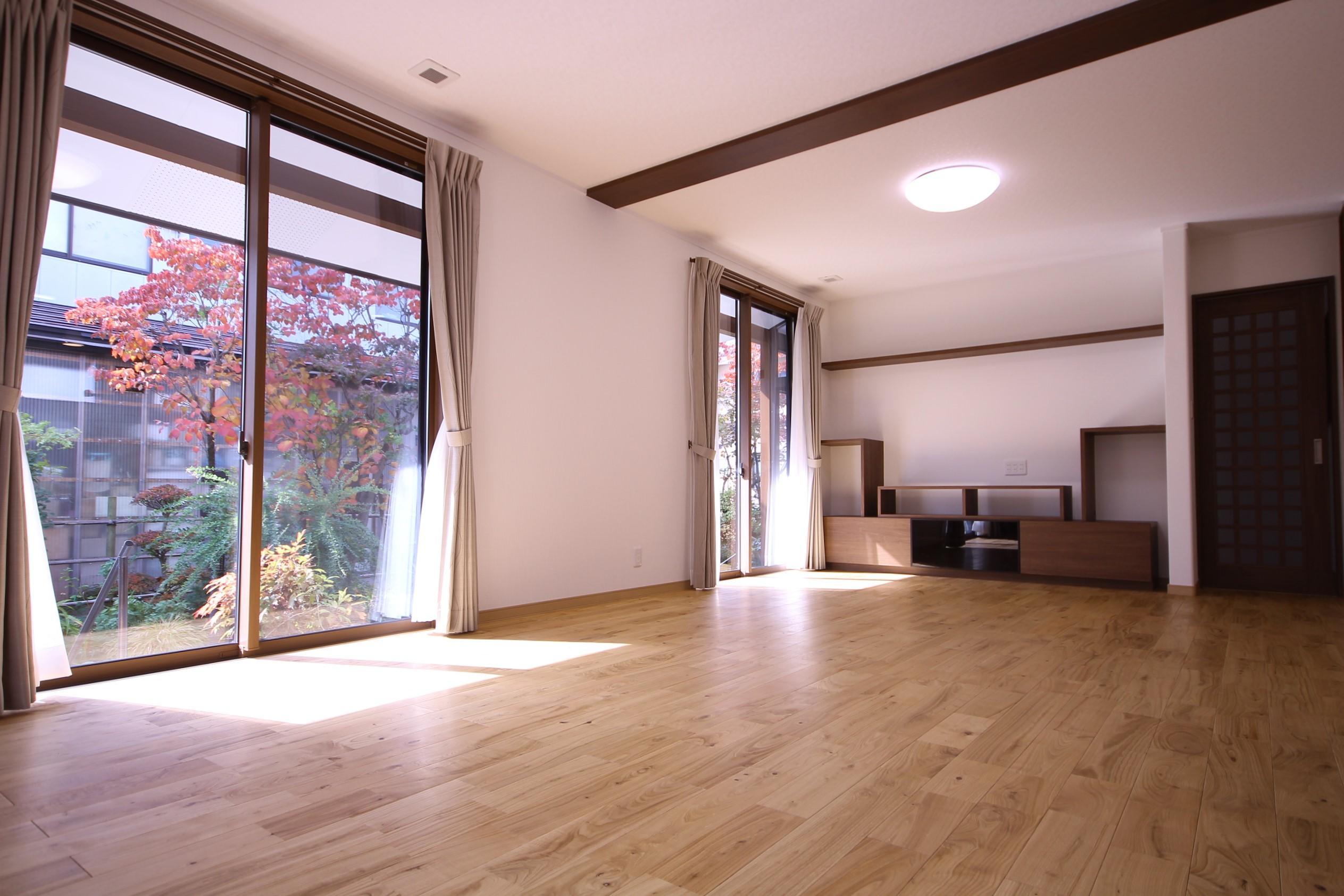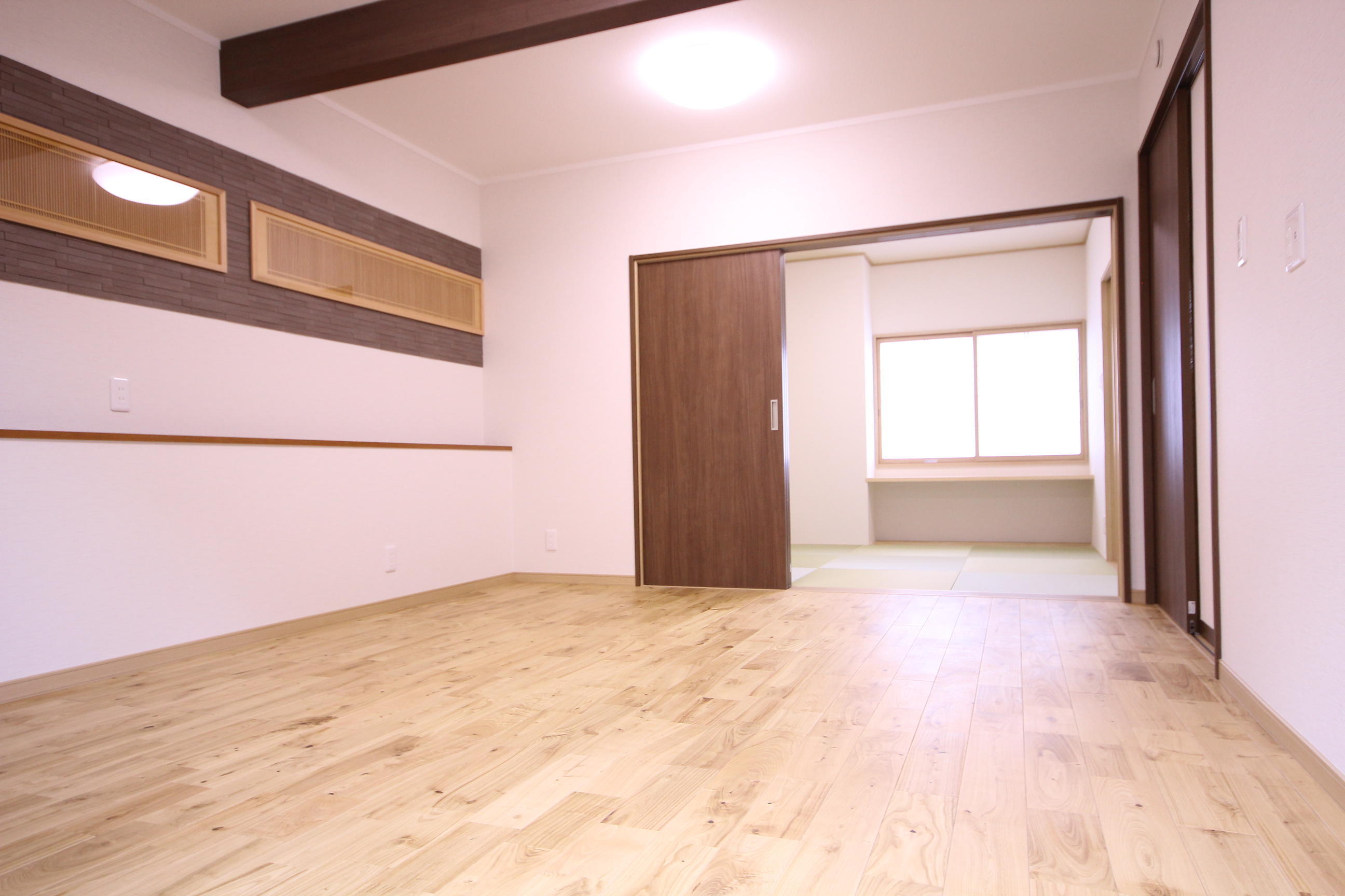 「1フロアここちリノベーション」では、2階はそのまま残し1階だけをリフォームするため、家全体をリフォームした場合に比べて工事費用を抑えることができ、さらに工事期間も短く済みます。 今回のお住まいでは、生活空間を集約するために2階から1階へ主寝室を移動しました。LDKは既存の和室と廊下を解体して、広々23帖の大空間に間取りを変更。1階のフローリングは全て肌触りの心地よい無垢材へと張替えを行いました。1階の窓・断熱材を全て入れ替えたことで断熱性が向上し、冬は暖かく夏は涼しく快適にお過ごしいただけます。 打合せを何度も重ねお施主様のこだわりがたくさん詰まった素敵なお住まいになりました。この度は工事のご依頼をいただき、ありがとうございました。