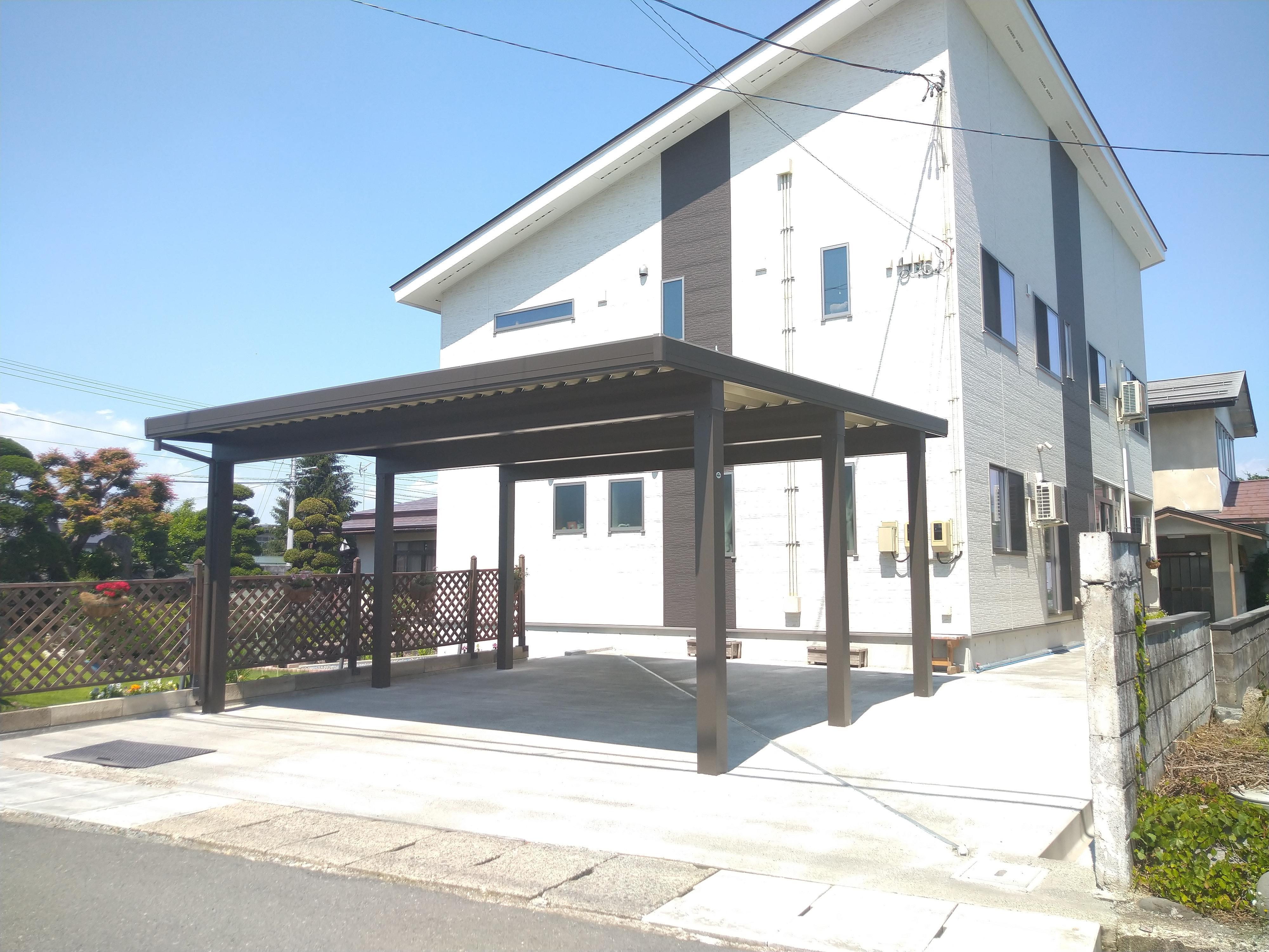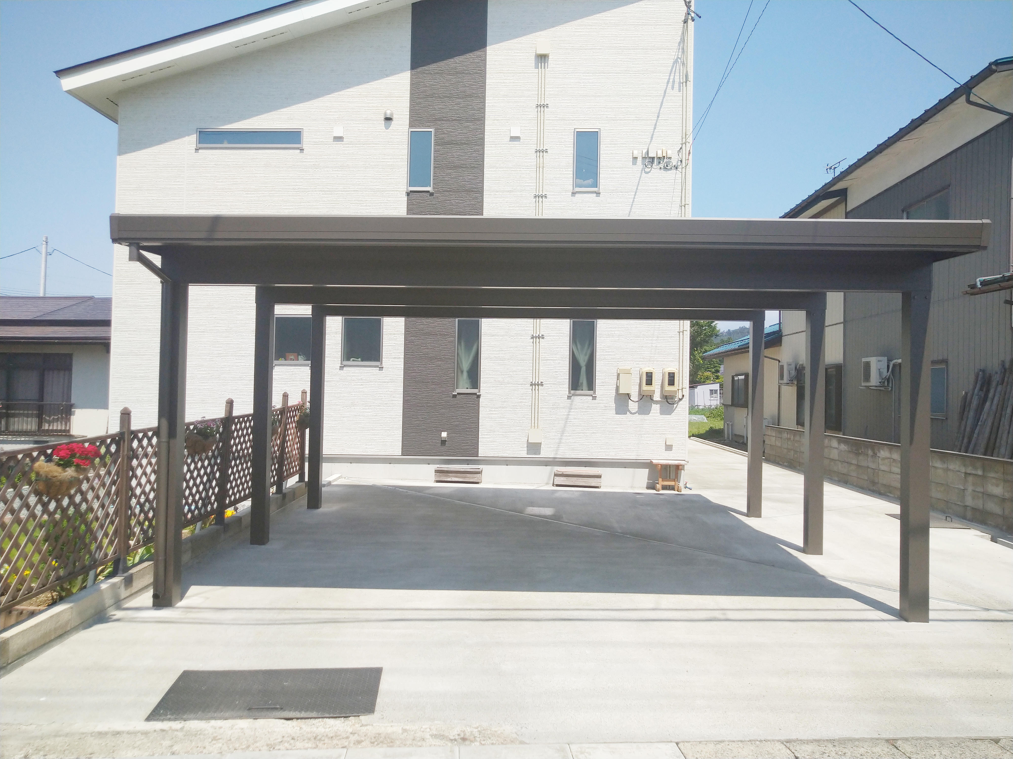 米沢は雪が多い地域のため、大雪の日はカーポートの積雪が心配になる方も多いと思います。今回設置させていただいたLIXILの「テリオスポートⅢ」は、150㎝までの積雪に対応しており、雪下ろしの頻度を減らすことができるので安心してご使用いただけます。またカーポートの屋根で直射日光を遮ることで、車内の温度上昇を防ぐことができ、1年を通して便利にお使いいただけるカースペースになりました。