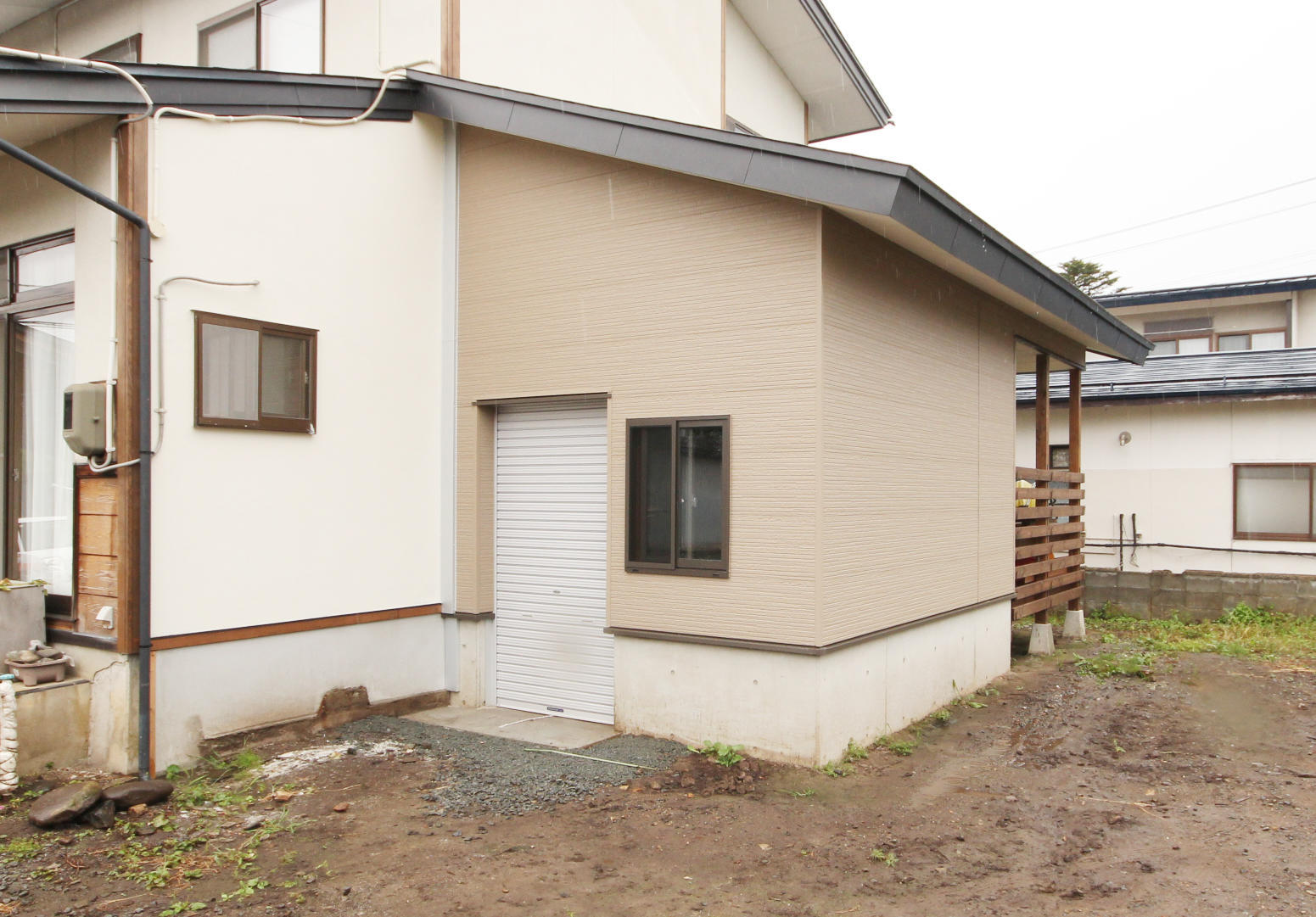 現在は使われていないという、築50年以上になる建物の東側を解体し、減築を行いました。使っていない部屋や住居の一部を解体することで、掃除や移動の手間が減り、防犯性の向上にもつながります。減築後の敷地には、T様が収穫された野菜や農機具を仕舞っておくための保管庫と外物置を新設。減築に伴い解体した浴室と洗面室はお住まいの西側に増築を行いました。住みながらの工事でご迷惑をお掛けしましたが、工事がスムーズに進むようお気遣いいただきありがとうございました。