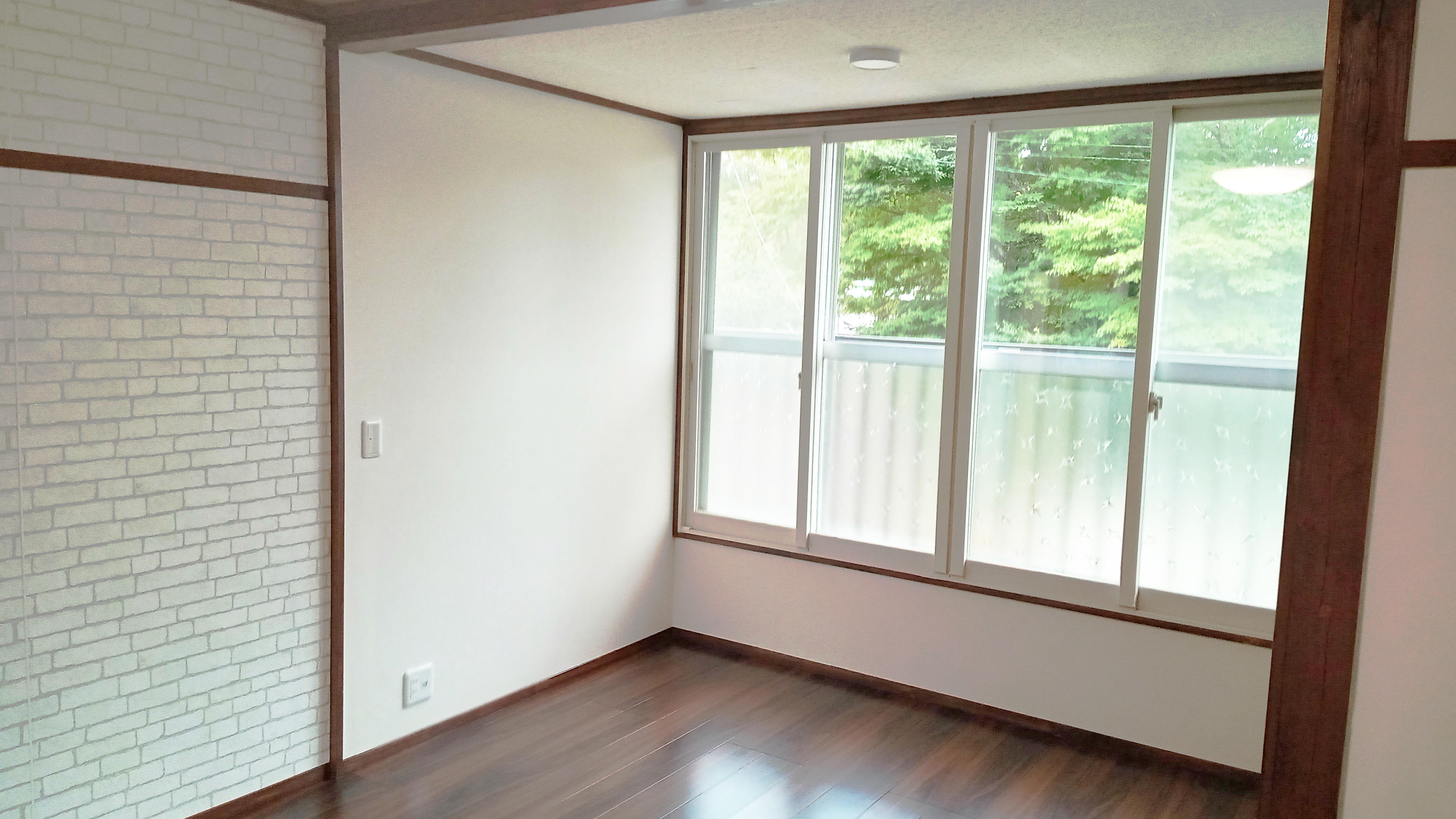 畳をフローリングに張替え、冬の寒さ対策として張替えの際に断熱材を入れました。また窓側にあった広縁スペースをなくし、お部屋の一部として取り込んだことでお部屋の面積が広くなっています。壁はクロスの貼替を行い、和室ならではの柱や梁が露出している”真壁構造”のままにしたことで、和モダンな雰囲気に仕上がりました。柱や梁はフローリングの色と合わせて塗装し、築年数の経った和室が木の温かみが感じられる洋室へと生まれ変わりました。