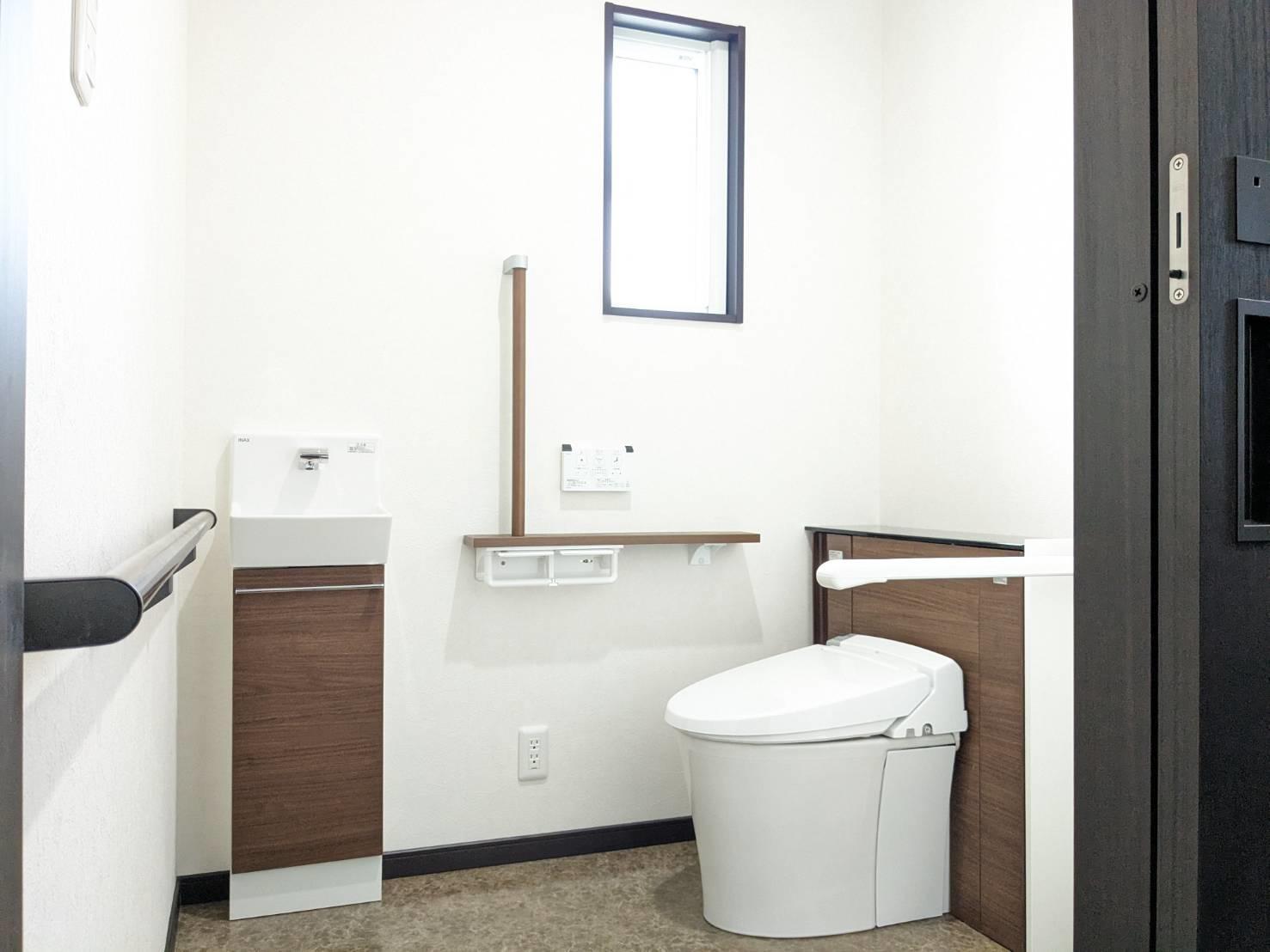 トイレは間口を広くとり、引き戸に変更しました。引き戸にすることで、トイレまわりのスペースを効果的に活用できるようになりました。トイレまわりには各所に手すりを設置し、将来的なバリアフリー対策も兼ね備え、安心してお使いいただけるトイレスペースとなりました!