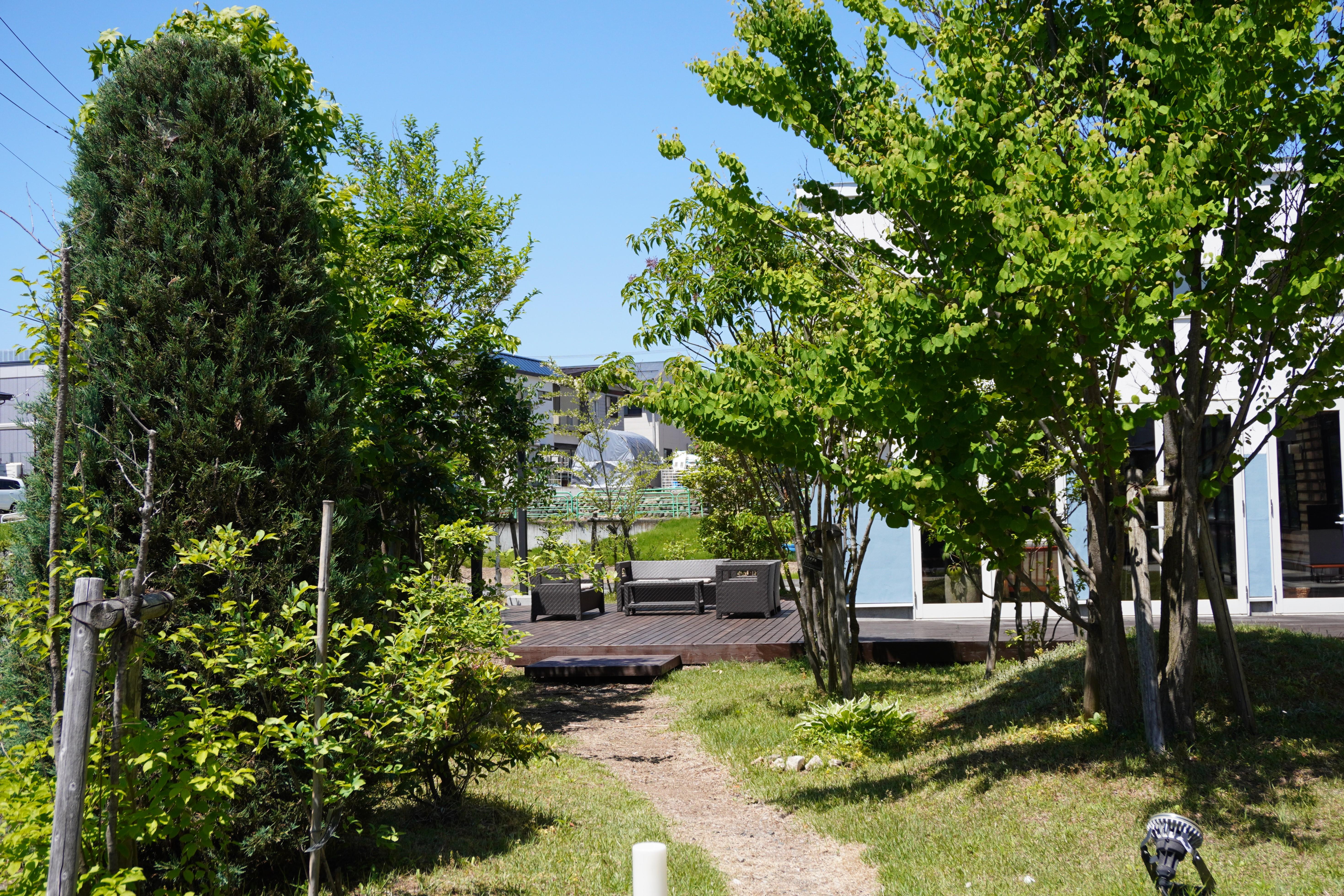 既存のウッドデッキを拡張し、カフェの南側に新たなデッキを設置したいというご要望があり、大工が丁寧に施工いたしました。既存のウッドデッキと色味を合わせることで、自然な仕上がりになっています。
