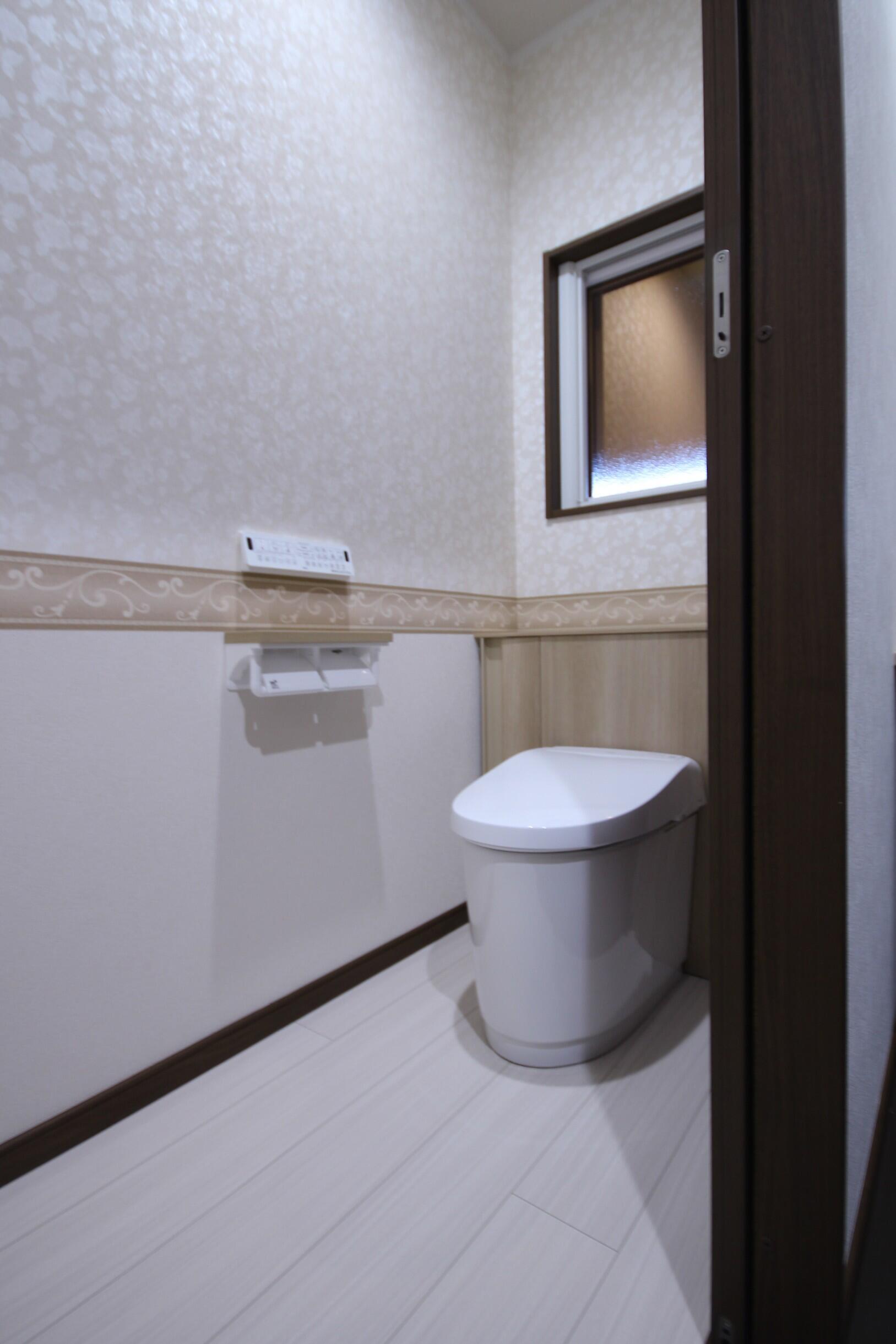 トイレには、キャビネット付きのLIXIL「Jフィット」を採用しました。給水管や電気コード、掃除道具や予備のトイレットペーパーなど、トイレまわりのごちゃつく要素を全てキャビネット内に収納。『ライトオーク』のキャビネットカラーが優しい雰囲気を醸し出しつつ、凸凹の少ないデザインでお掃除も一拭きで行えます。