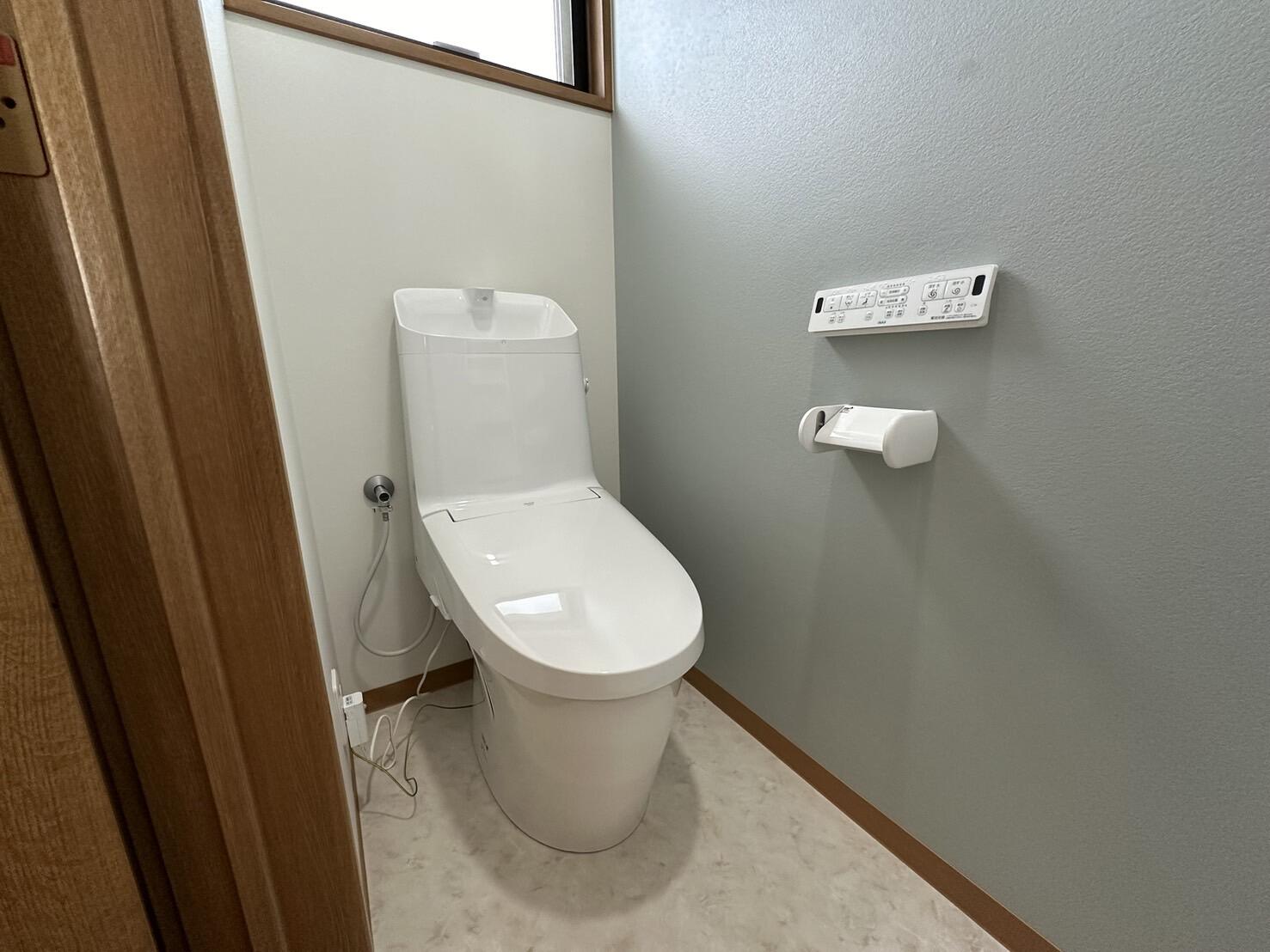 トイレはタンク一体型の『アメージュシャワートイレ』へ一新しました。 従来の陶器では落ちにくかった汚れも、水のアカが固着しにくい「アクアセラミック」ならツルンと落ちます。さらに、便器のフチを丸ごとなくした「フチレス形状」により、サッとひと拭きでお掃除完了。常に清潔な状態を保てる、家事ラク仕様のトイレです。