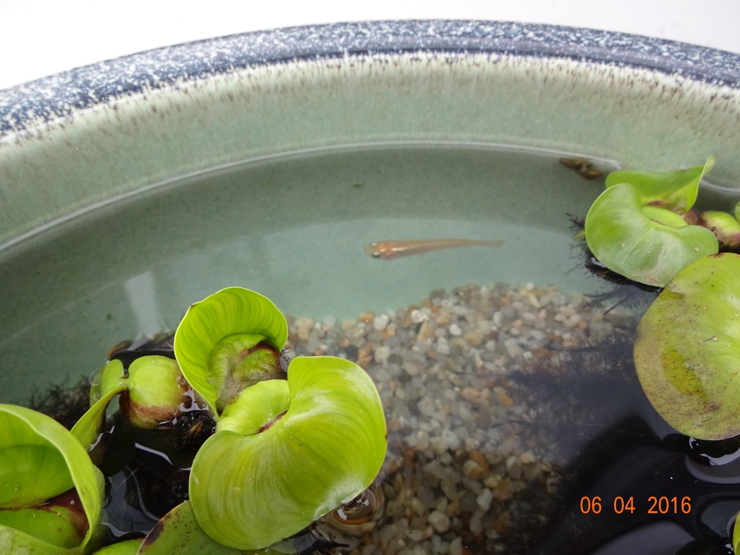 そのお宅でのびのびと暮らす、メダカの赤ちゃんたち。